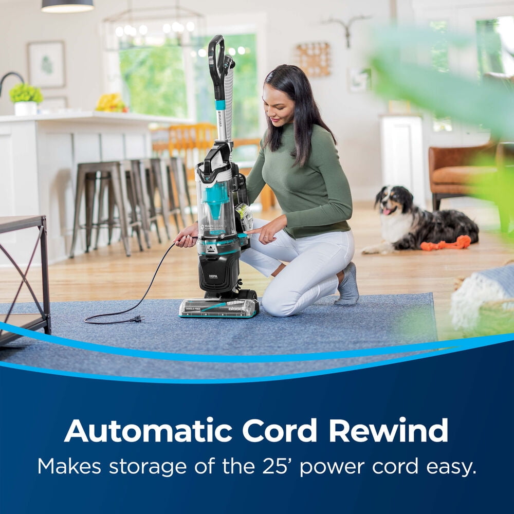 BISSELL Bagless Upright Vacuum, Multiclean™ Allergen Pet Rewind, Pet Friendly, Powerful Suction, Lightweight design, with Swivel Steering, Tangle Free Brushroll, and LED Headlights, Black