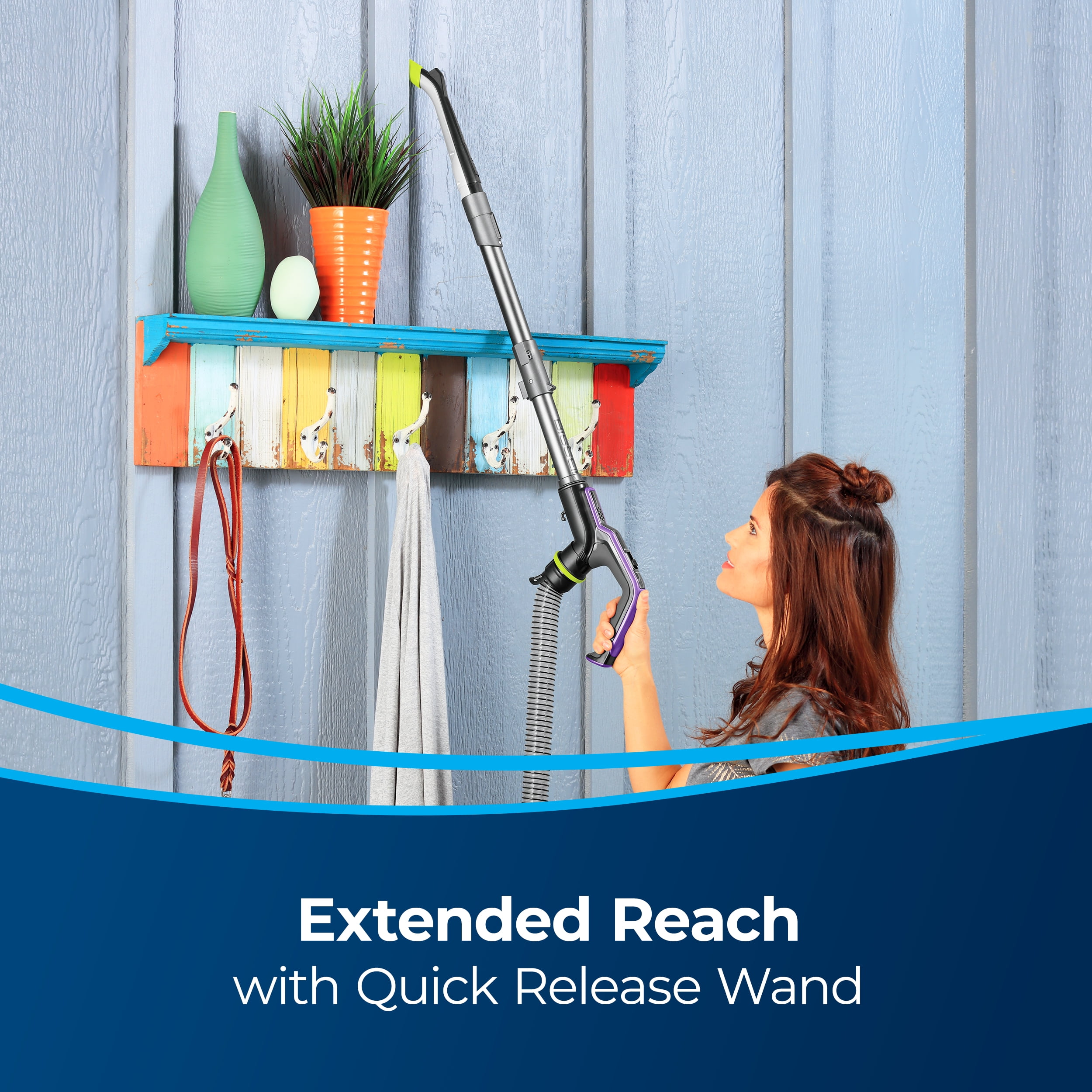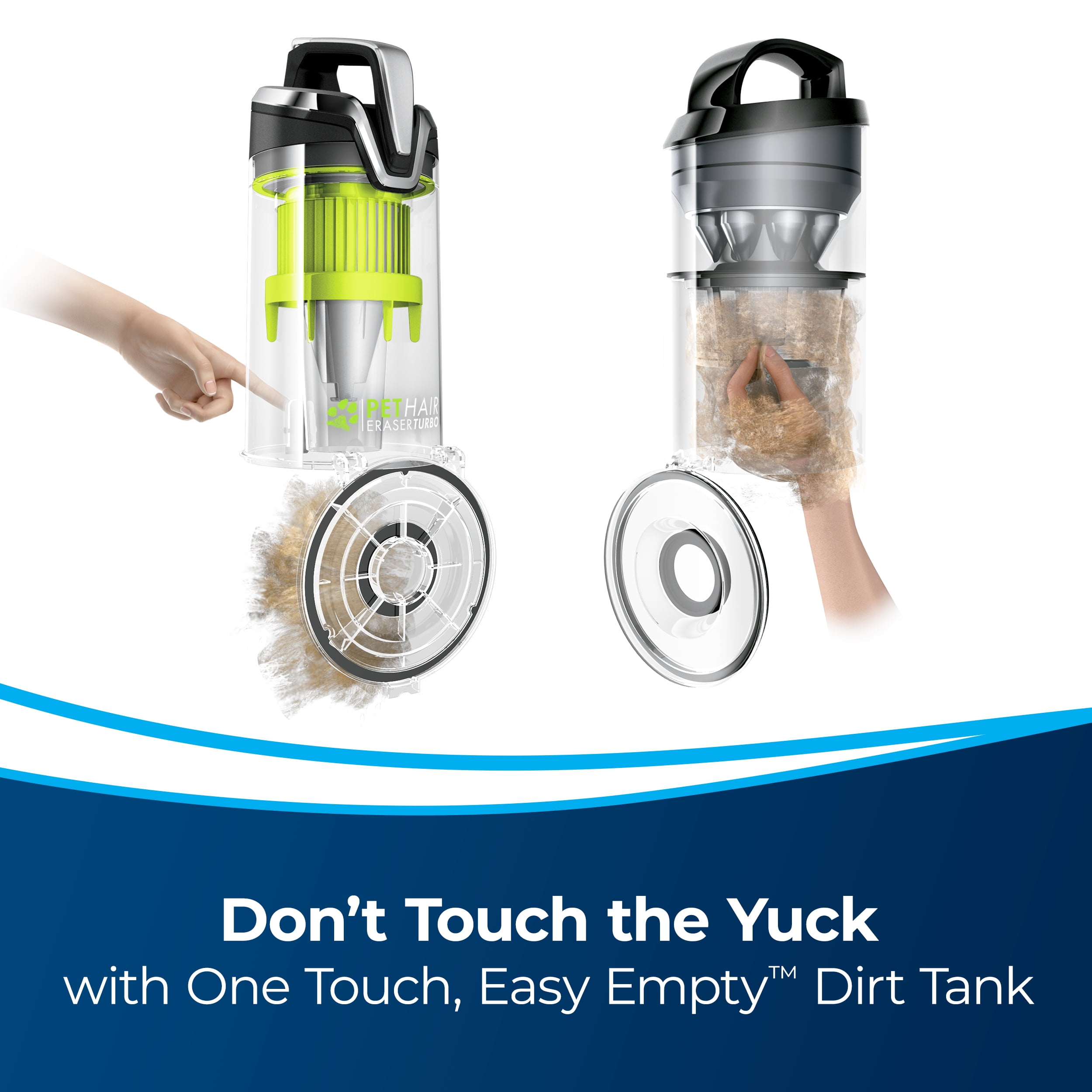 Every purchase saves pets! BISSELL proudly supports BISSELL Pet Foundation® and its mission to help save homeless pets. Powerful pet hair pickup in a lightweight and agile design Tangle-Free Brush Roll actively prevents annoying hair wrap. One-Touch, Easy Empty™ with Cyclonic Pet Hair Spooling System™ means you no longer have to touch the yuck. Quick Release Extension Wand is always ready, always on Reach more messes with specialized pet tools like the Pet Turbo-Eraser® Tool and Crevice Tool. Smart Seal® Allergen System traps dust and allergens while eliminating odors to freshen your home as you clean Powerful edge-to-edge suction on low to high pile carpets, area rugs, and hard surfaces with fingertip suction control and brush roll-on/off feature.