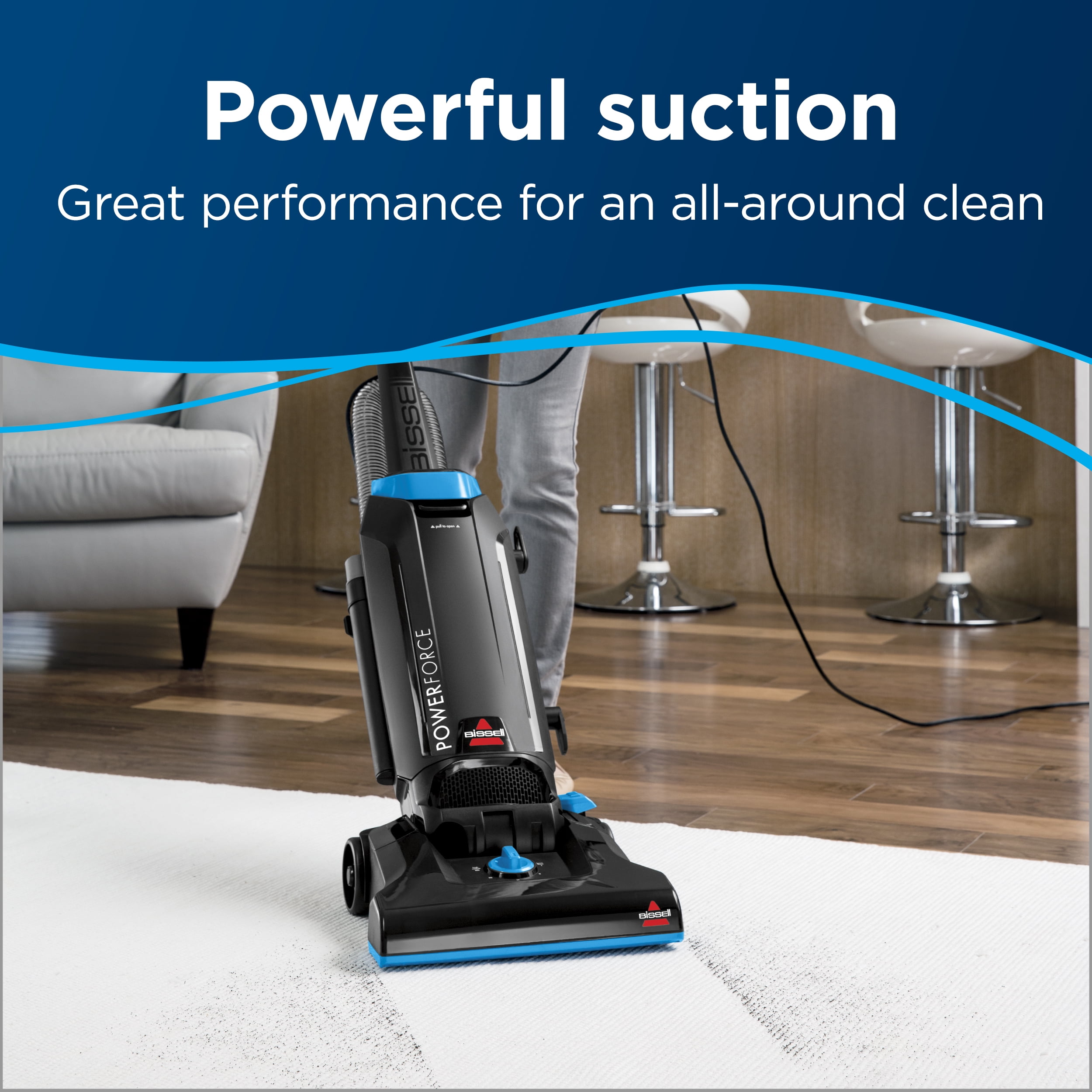 BISSELL PowerForce Bagged, Upright Vacuum, Powerful Suction, Allergen Filtration Bags, Flexible Reach, 1739, Black & Blue
