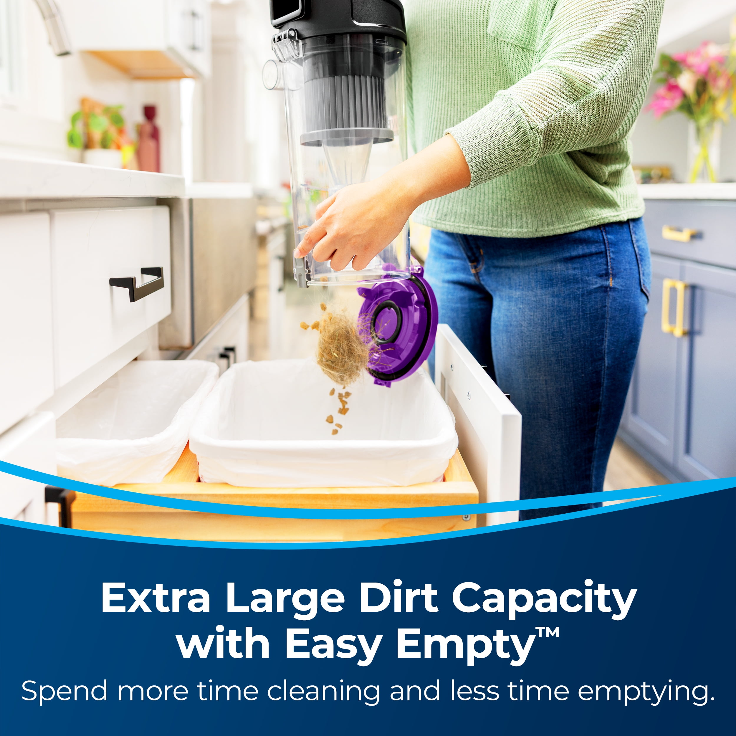 Every Purchase Saves Pets™. BISSELL proudly supports BISSELL Pet Foundation® and its mission to help save homeless pets. Powerful Pet Hair Pickup. Get convenient & powerful cleaning with one lightweight machine. Active Extension Wand. Reaches up to 12 ft to clean above floors and hard-to-reach areas. Extra-Large Dirt Capacity with Easy Empty™. Extra-large capacity means you don’t have to stop as often to empty. Scatter-Free Technology. Pick up messes without scattering them around.