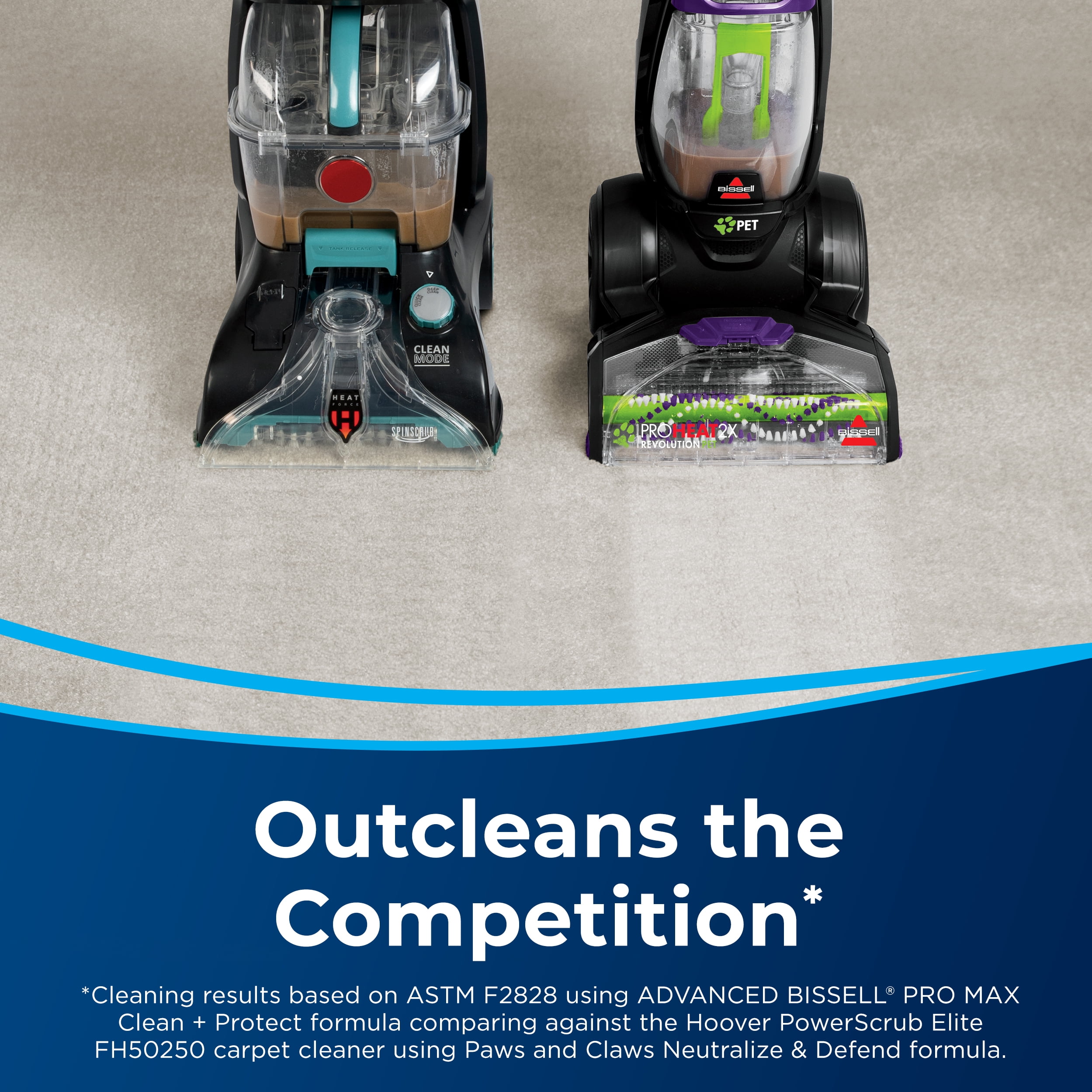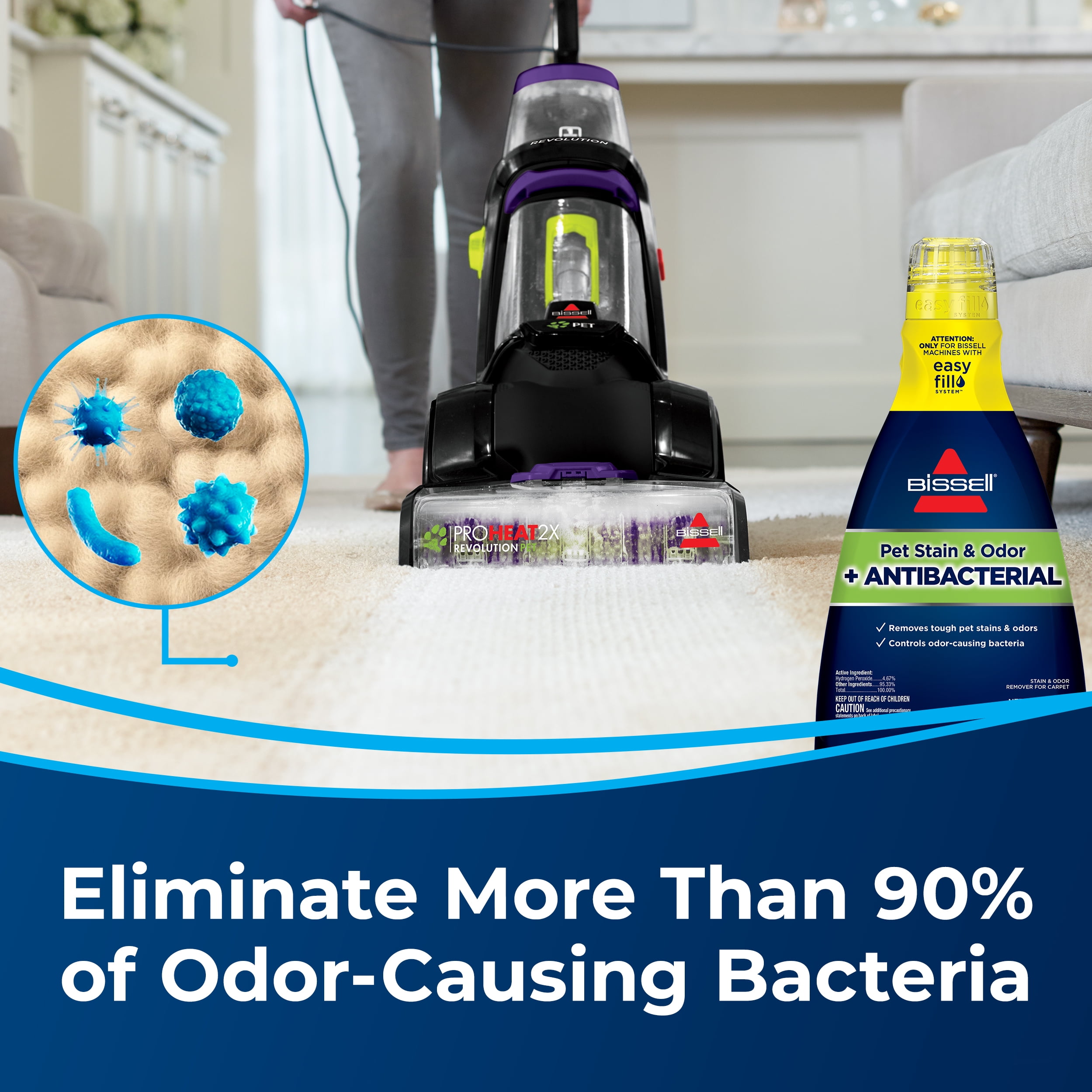 Get professional style results with BISSELL Preheats 2X Revolution Advanced carpet cleaner. It out cleans the leading rental machine and is half the weight so you can truly own your professional clean. This easy-to-use carpet cleaner was designed with a low-profile foot to clean and maneuver under and around furniture. Dual Dirt Lifter Power Brushes and powerful suction combined with BISSELL Advanced Pro Max Clean + Protect formula loosen, lift and remove embedded dirt and stains. Use with Deep Clean + Antibacterial formula to eliminate more than 90% of odor-causing bacteria. Max Clean Mode removes embedded dirt, stains, and allergens, giving you a professional-grade clean on even the dirtiest carpets.