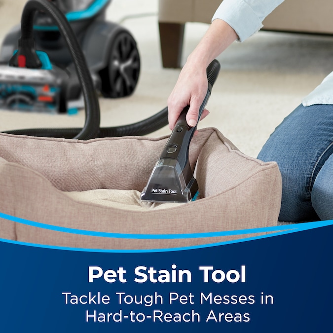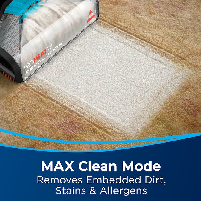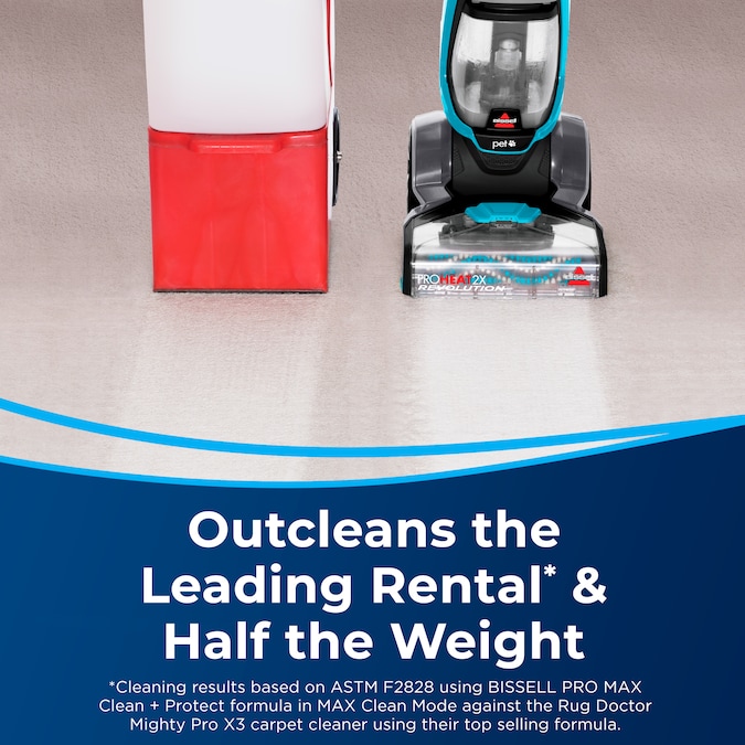 Get professional style results with the BISSELL® ProHeat 2X® Revolution® Pet carpet cleaner. It outcleans the leading rental machine and is half the weight, so you can truly own your professional clean. This easy to use carpet cleaner was designed with a low profile foot to clean and maneuver under and around furniture. Dual DirtLifter® PowerBrushes and powerful suction combined with BISSELL® PRO MAX Clean and Protect formula loosen, lift and remove embedded dirt and stains. Use with Deep Clean and Antibacterial formula to eliminate more than 90% of odor-causing bacteria. MAX Clean Mode removes embedded dirt, stains and allergens, giving you a professional grade clean on the dirtiest carpets. When using Express Clean Mode, your carpets and area rugs dry in about 30 minutes*, so you don’t have to avoid your floors all day. Heatwave Technology® helps maintain water temperature throughout the cleaning process. The attached hose and tools make it easy to clean pet messes from stairs, upholstery and other hard-to-reach areas. Plus, the Pet Stain Tool has spray tips that reach deep into carpet fibers to remove tough stains and odors. And this machine doesn’t just clean up after pets, it helps save them, too. BISSELL proudly supports BISSELL Pet Foundation® and its mission to help save homeless pets. When you buy a BISSELL product, you help save pets, too. We’re proud to design products that help make pet messes, odors and pet homelessness disappear. *Reference instruction in user guide. Tested on new carpet with protectant. Results may vary.
