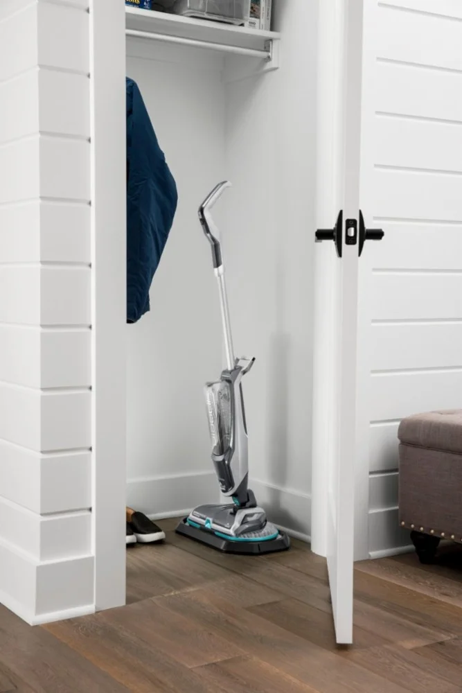 Let the Bissell spin wave cordless hard floor spin mop, 2315A do it for you. This lightweight, spin mop glides across your floors making it easier to clean those tough, sticky messes. The rotating mop pads reduce cleaning effort by scrubbing your floors for you while being gentle and safe to use on sealed hard-surface floors such as tile, linoleum, vinyl flooring, and sealed hardwood floors. This machine comes with a set of soft-touch cleaning pads for everyday cleaning and scrubby pads for tough, sticky messes. It is also equipped with an on-demand spray that allows you to dispense just the right amount of multi-surface solution onto your floors. In addition, cordless convenience and swivel steering make it easy to maneuver around and under furniture. There is an 18v lithium-ion battery that provides cordless cleaning for up to 20 minutes and an integrated carry handle makes it easier to carry this lightweight machine from room to room.