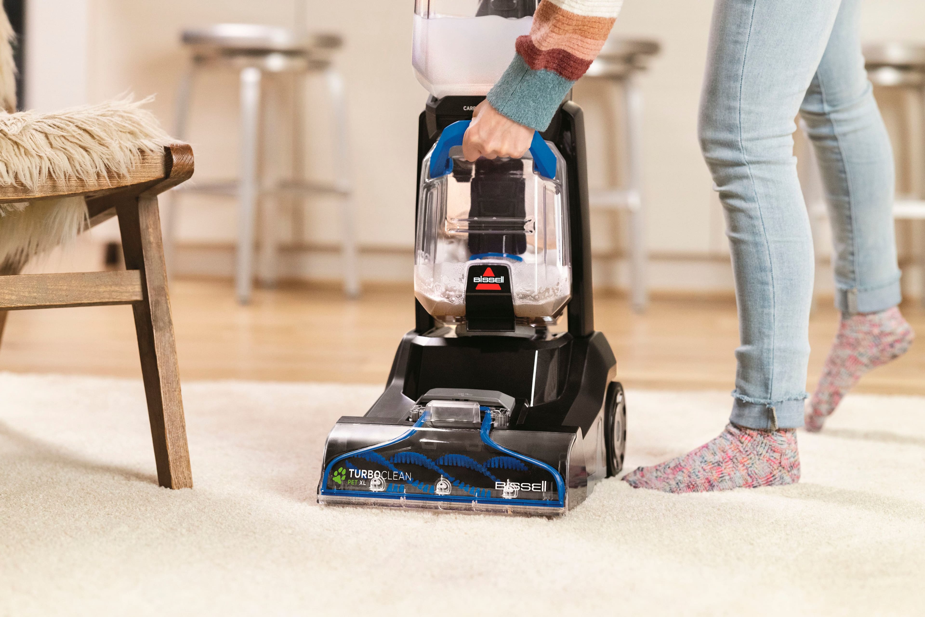 Clean more than just your carpet with the timesaving technology of BISSELL TurboClean Pet XL upright carpet & upholstery cleaner. Get at hard-to-reach areas like stairs, pet beds, baseboards and more with the Spraying Crevice Tool. Give your furniture a deep clean to refresh your space with the 3″ Tough Stain Tool. Save cleaning time with the 10″ Clean Path, which covers more carpet in a single pass. You’ll make fewer trips to the sink for refills, thanks to the 1 gallon clean tank. 4-Row DeepReach Powerbrush to easily remove tough pet stains, embedded dirt, and dander allergens deep within the carpet when used with BISSELL PRO MAX Clean & Protect Formula with StainProtect Technology. Leave carpets smelling fresh and odor-free while eliminating more than 90% of odor causing bacteria by using BISSELL Pet Stain & Odor + Antibacterial Formula. BISSELL proudly supports BISSELL Pet Foundation and its mission to help save homeless pets. We’re proud to design products that help make pet messes, odors and pet homelessness disappear.