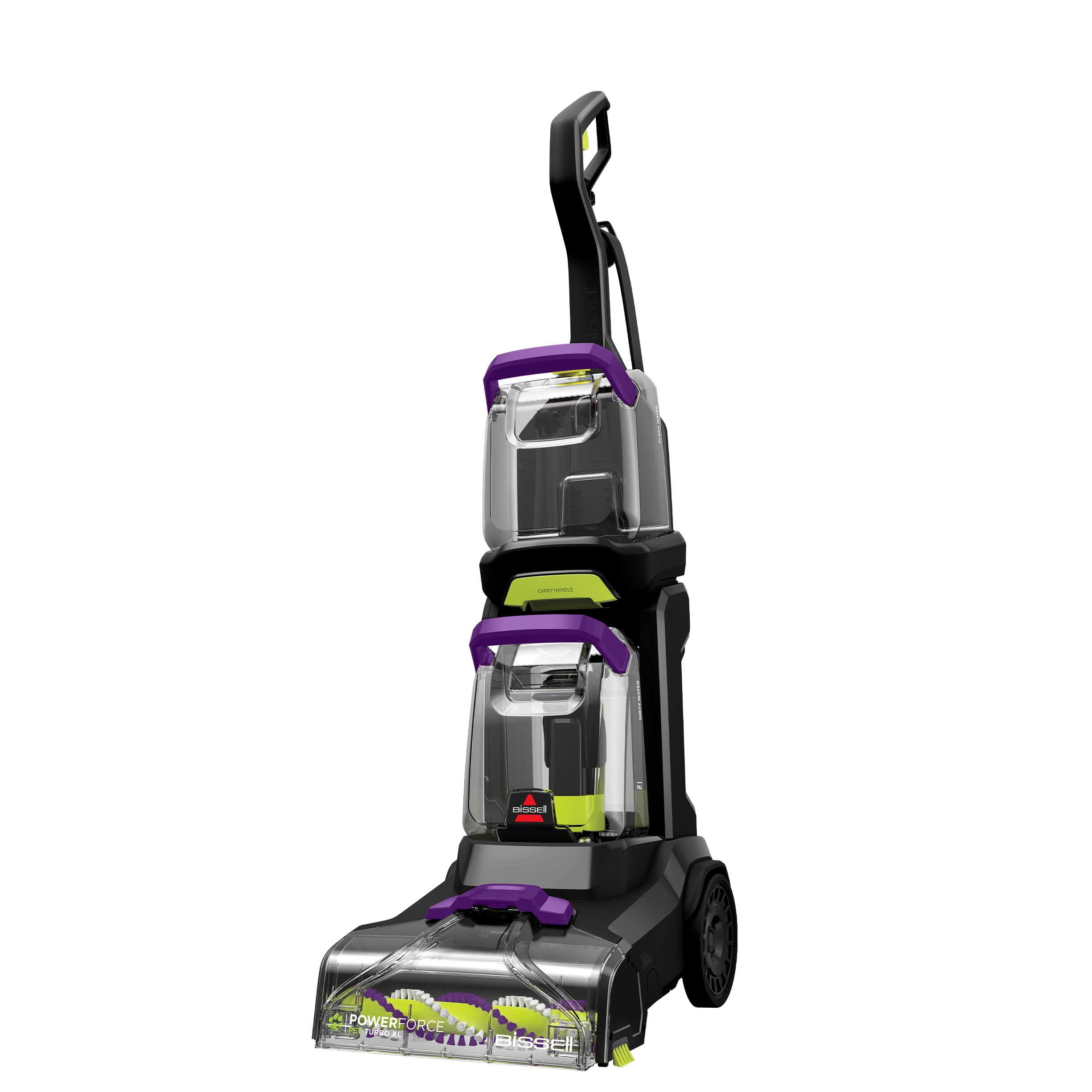Pet messes shouldn’t be a big deal, and with BISSELL® PowerForce™ Pet Turbo XL 3896 upright carpet cleaner, it’s so easy to make them disappear! It works on carpet, upholstery and all those hard-to-reach places your pets like to go. We gave it a Four-Row Deep Reach PowerBrush® with extra-long bristles that, when used with the included BISSELL® PRO MAX Clean + Protect formula, extracts embedded dirt to out-clean the competition.2 For those harder-to-reach messes on the couch or stairs, simply attach the 3” Tough Stain Tool to the 8-foot hose and deep clean all around your home. And if you’ve got an extra smelly mess on your hands, use the included BISSELL® Pet Stain & Odor + Antibacterial Formula, which eliminates 90% of odor-causing bacteria. You’ll have dry carpets in 45 minutes or less using Express Clean Mode!1 The easy-to-remove nozzle and tanks ensure easy cleanup after use. BISSELL proudly supports BISSELL Pet Foundation® and its mission to help save homeless pets. When you buy a BISSELL® product, you help save pets, too. We’re proud to design products that help make pet messes, odors and pet homelessness disappear. 1Express Clean Mode (reference instructions in the user guide). Tested on new carpet with protectant. Results may vary. 2Cleaning results based on ASTM F2828 using BISSELL® Advanced PRO MAX Clean + Protect in Deep Clean Mode versus Hoover Power Scrub Deluxe FH50150 using Deep Clean & Neutralize.