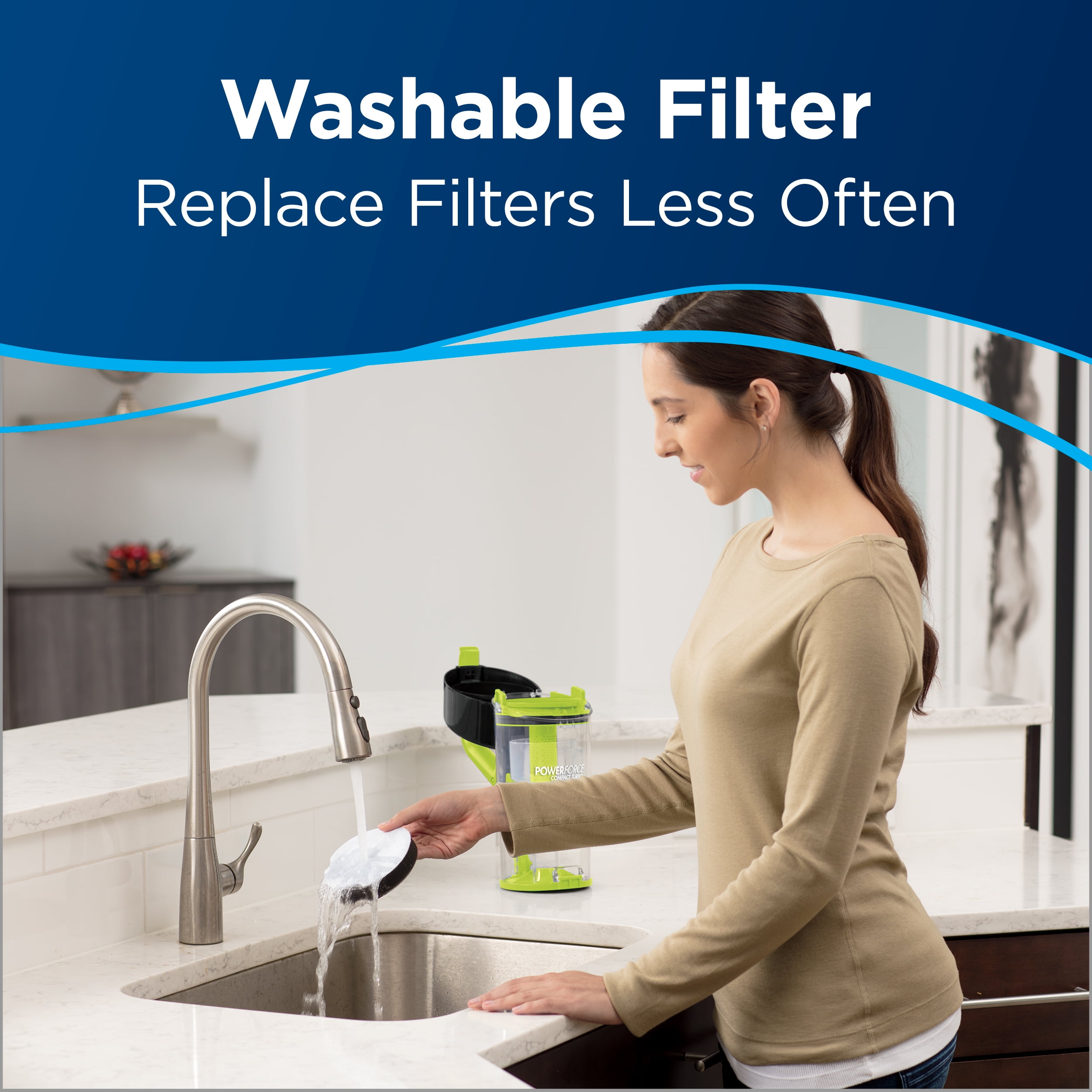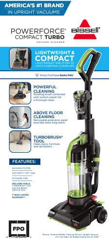 Keep your home spic and span with the BISSELL Power Force Compact Turbo Bagless Vacuum. It offers fast and easy cleaning in a lightweight, compact design. The BISSELL Power Force compact vacuum delivers powerful suction for efficient clean-ups. The convenient cleaning machine requires no bags and has an easy-to-empty dirt cup. The see-through design of the BISSELL bagless vacuum also lets you tell when the cup needs to be emptied, while the compact design makes it easy to maneuver. It also takes up minimal space, so it’s easier to store. Designed for modern homes, BISSELL Power Force Compact Turbo Bagless Vacuum is suitable for use on a variety of floor types from wood to tile, laminate, and more. Compact and maneuverable, the Power Force® Compact Turbo Vacuum weighs less than 8 pounds. Ideal for life’s everyday cleanups and hard-to-reach spaces. Powerful cleaning rotating brush and suction power system gives your home a thorough clean.
