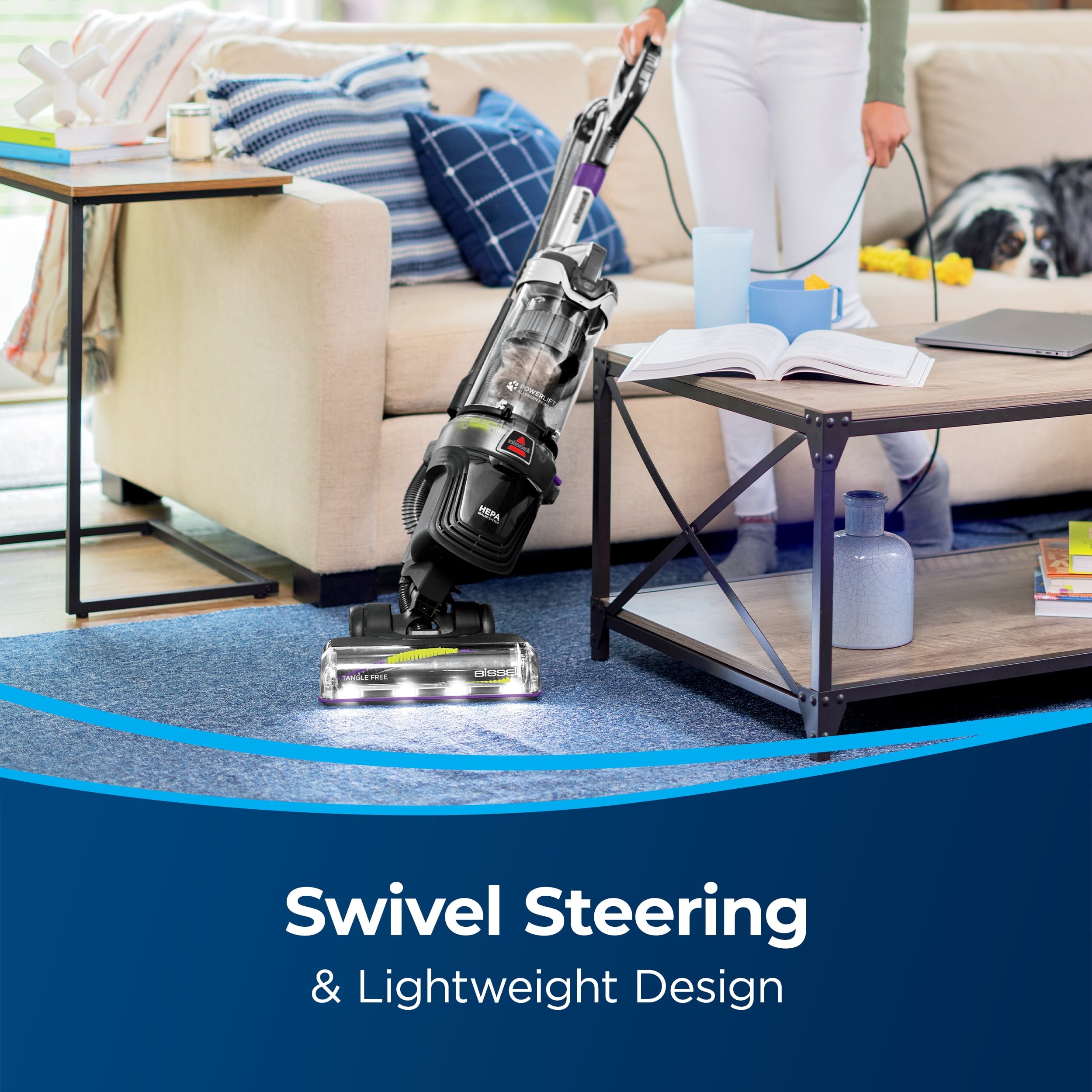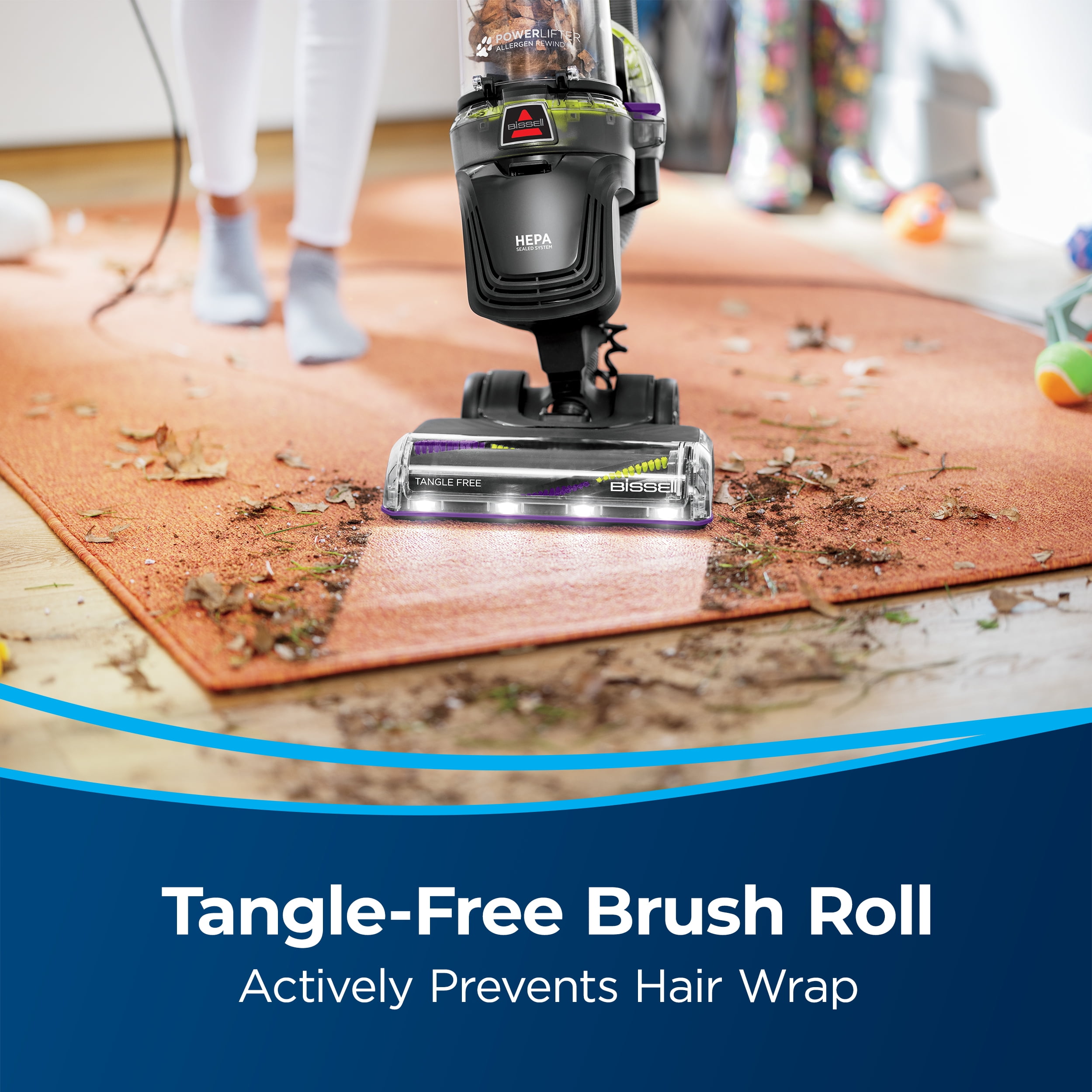 BISSELL Vacuum Cleaner – HEPA Filtration Tangle-Free Brush Roll minimizes hair wrap with innovative technology LED Headlights illuminate dirt and pet hair in hidden areas Swivel Steering and lightweight design make maneuvering around furniture effortless Specialized Pet Tools effectively lift dirt and pet hair from stairs, carpets, upholstery, corners, and hard-to-reach places One Touch Easy-Empty™ Dirt Tank allows for hands-free emptying with the push of a button
