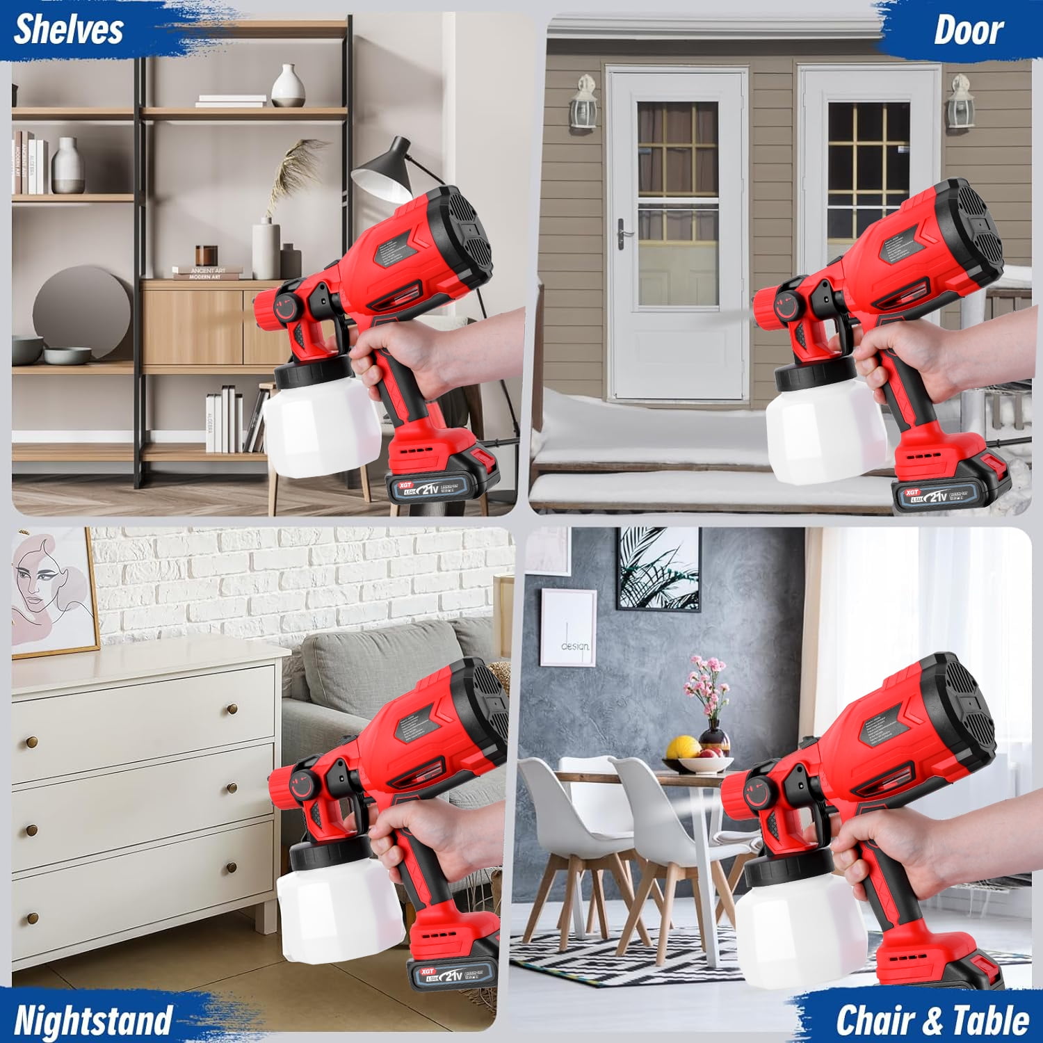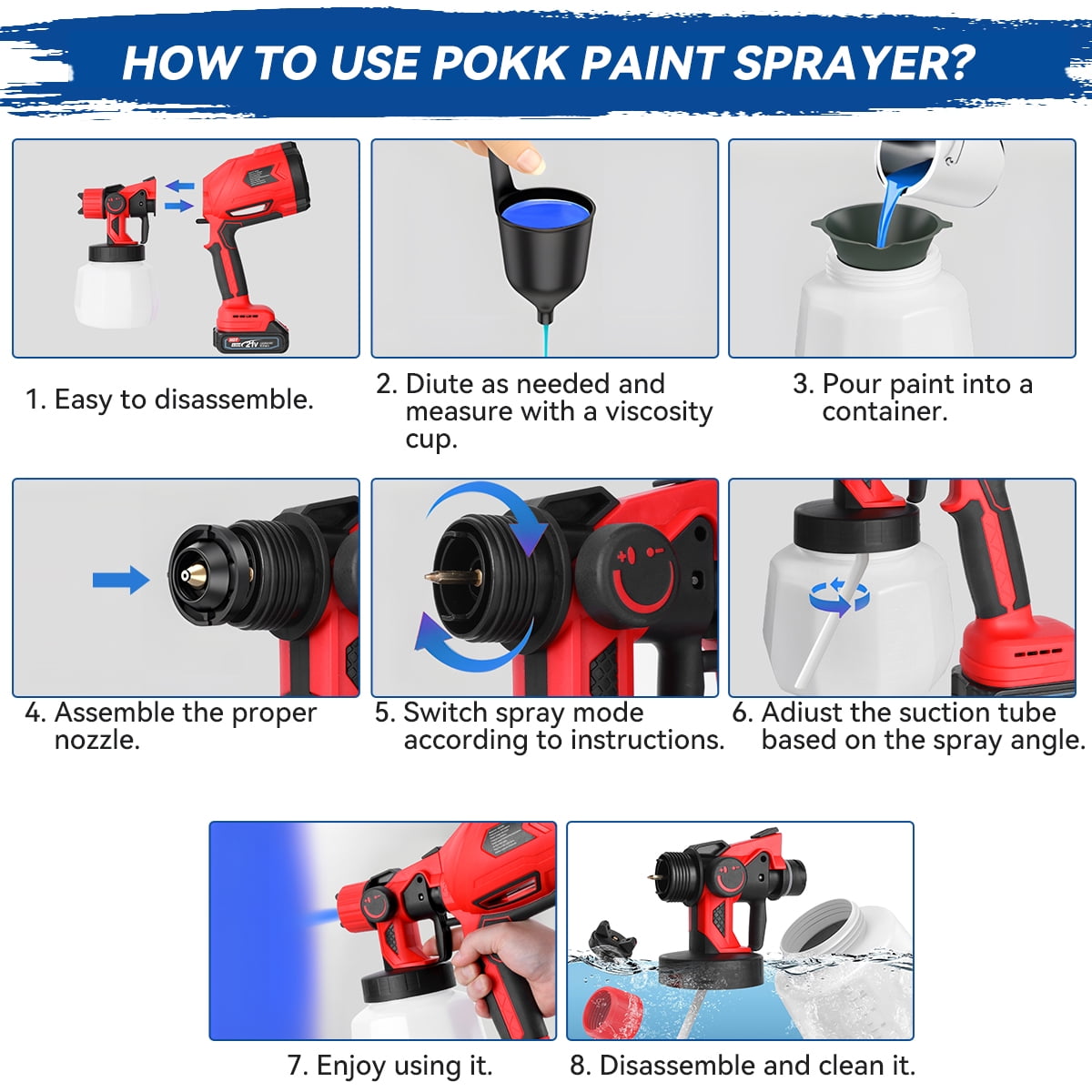 【CORDLESS DESIGN】This electric paint sprayer is powered by BIUBLE 24V li-ion batteries; Cordless design makes you have no power cord restrictions, working more freely and effectively. 【3 PATTERNS】 Equipped with 3 different spraying methods (horizontal, vertical and circular spraying), you can choose the most suitable one according to spraying environment. 【COPPER SEALS & SAVE PAINT】 It is well-known that paint corrodes plastic. The painting will render the plastic seal useless, leading to paint leakage and clogging. With our copper seals, you get the most out of every ounce of paint! In addition, the anti-backflow design allows you to work as you wish. 【MAXIMUM VISCOSITY】The maximum paint viscosity our paint sprayer can spray is <=100DIN. This paint sprayer comes with a detailed instruction manual. Even if you are a novice, you can easily learn to operate it after reading the instruction manual completely. 【WIDE APPLICATION】Suitable for coating doors, windows, walls, fences, decking, ceilings, floors, cabinets, home furniture and other objects.