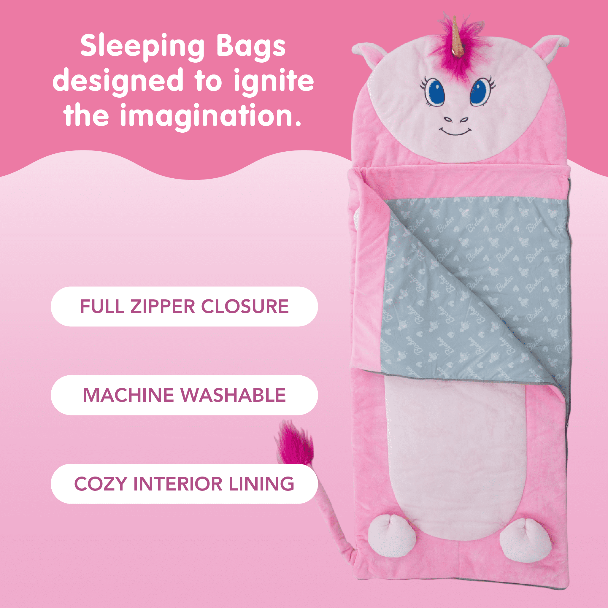 Bixbee’s sleeping bags are designed for a restful and comfortable night’s sleep for your kids and toddlers. Perfect for sleepovers, nap time, or family movie night. Measures 60″ x 22″ and is for indoor use only. Spark your child’s imagination and inspire colorful dreams with this cheerful slumber sack.