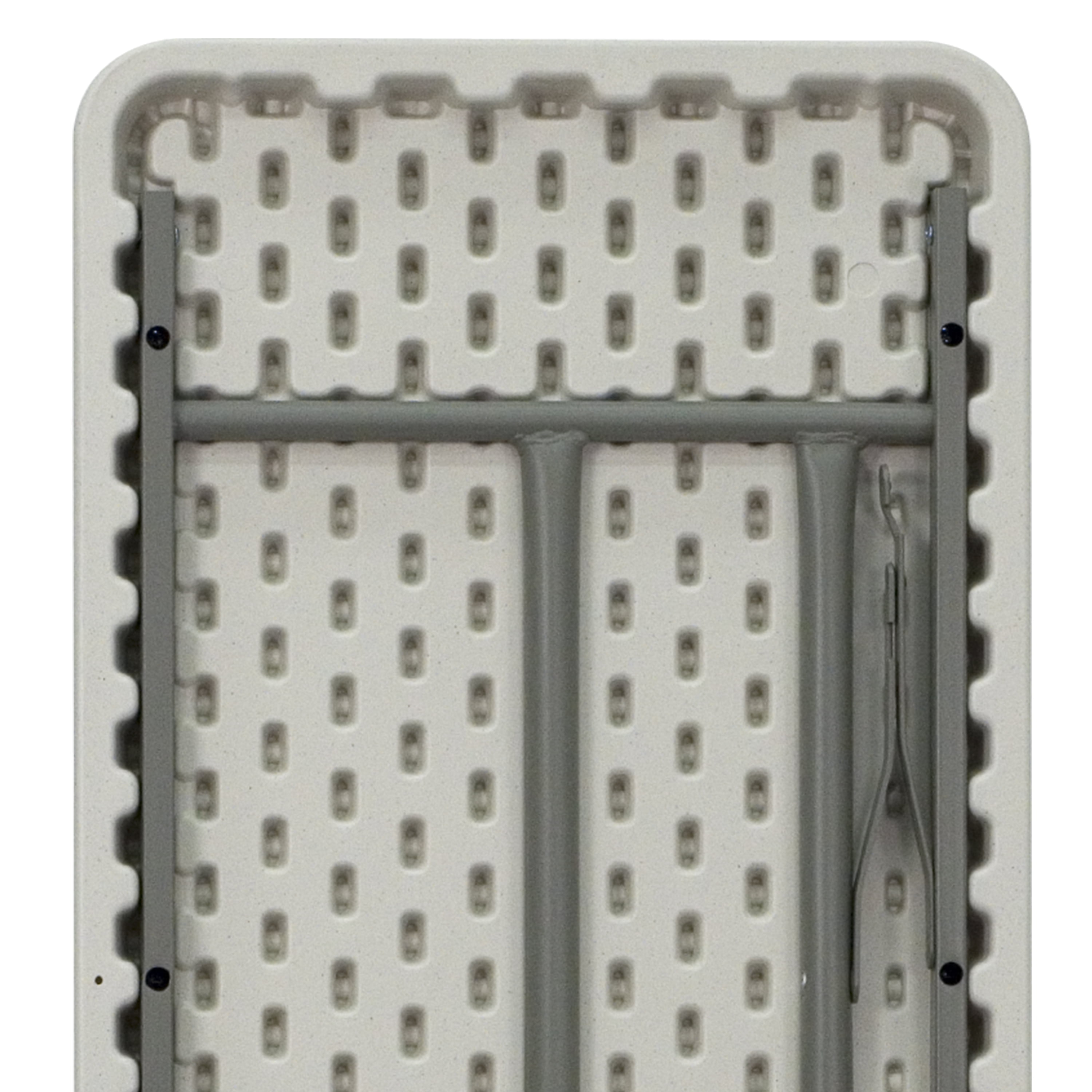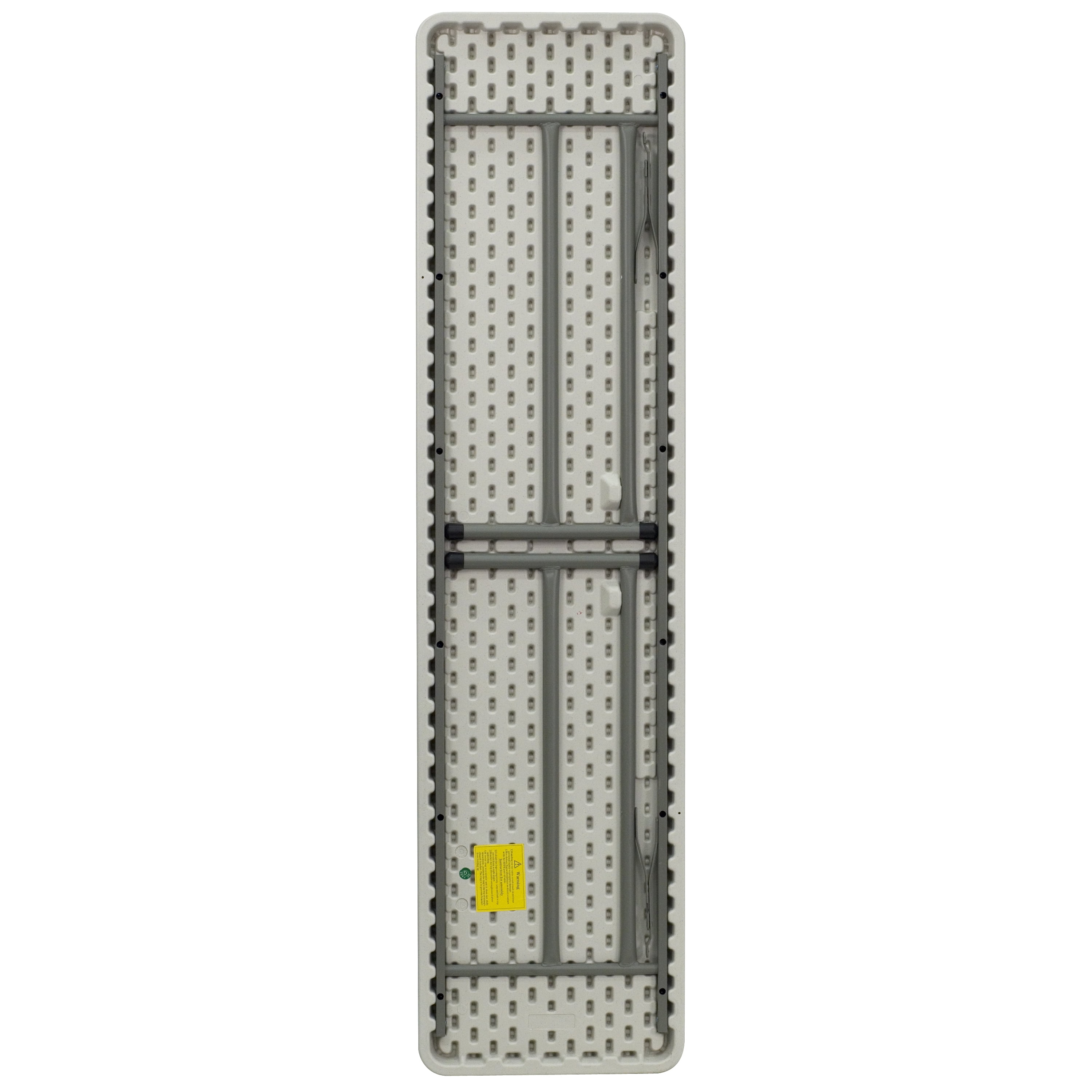 BizChair 6-Foot Granite White Plastic Folding Training Table Ready To Use Commercial Table 6′ Folding Training Table Seats up to 3 Adults 220 lb. Static Load Capacity 1.75″ Thick Granite White Top is waterproof, impact and stain resistant Gray Powder Coated Locking Legs with protective floor caps Legs fold underneath top for flat storage PRODUCT MEASUREMENTS: Overall Size: 18″W x 72″D x 29″H; No Assembly Required