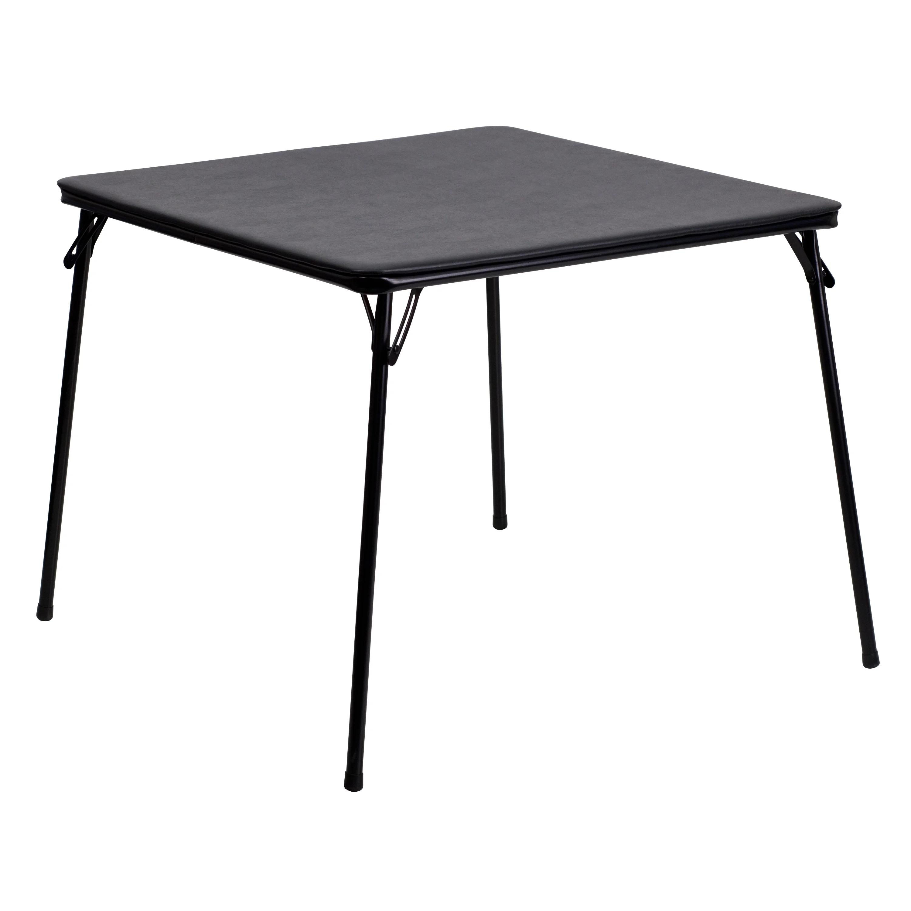 Whether you’re hosting a game night or attending one, this square folding table can travel or offer a quick setup for other players. The black card table is an instant win due to its lightweight, portable design. This light folding table with collapsible legs is perfect for everything from weddings, baby showers, and banquets to game nights with family and friends or that 1,000 piece puzzle you’ve wanted to tackle. This temporary dining table seats extra dinner guests, provides a space for arts and crafts and is a wise investment for any mobile catering business. Uniquely designed with a vinyl-covered padded top, the table’s surface prevents cards from sliding off of the table while providing ease of cleaning. When no longer in use, fold the legs in and store away.