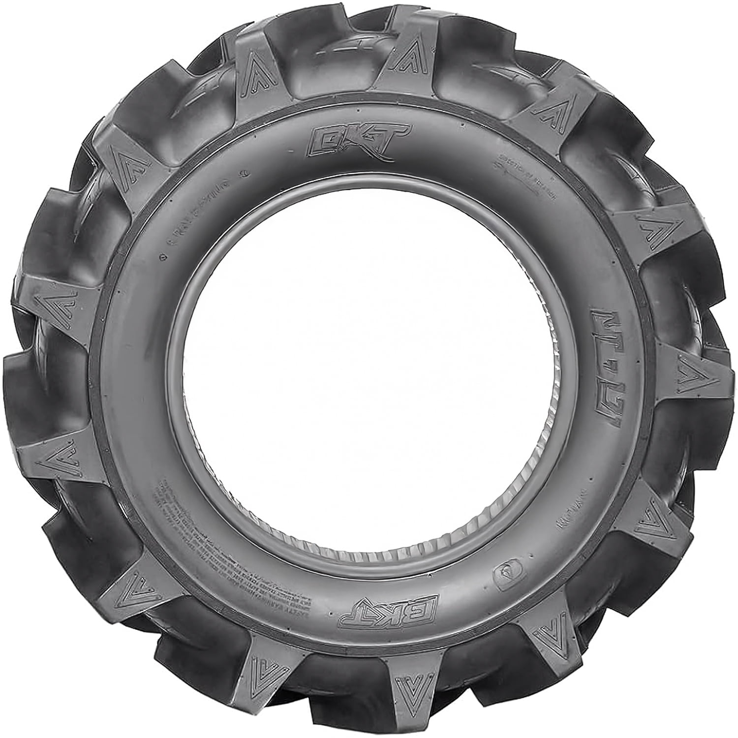 BKT AT-171 FEATURES AND BENEFITS All terrain traction Self-cleaning tread design Enhanced durability OVERVIEW The BKT AT-171 is an all terrain, all season tire manufactured for ATVs. The tire promotes great all terrain traction thanks to its tread design. The pattern features a directional design with large tread blocks and a high void ratio that allows the tire to firmly grip the soft, loose and uneven terrain surfaces in all weather. As a result, the tire is able to conquer everything from deep mud to loose dirt with ease. The maintained road contact on such terrains ensures a safer year round driving experience. The model offers a safer performance. The special tread design keeps the tire’s footprint clean at all times and it actively prevents stone retention. The high void ratio prevents mud and rocks from being stuck between the tread elements and blocking the tire’s contact with the road. The constantly clean footprint ensures the tire’s all weather road contact, while the prevention of stone retention guarantees a secure drive. The AT 171 has great durability. The model’s internal structure prevents the deformation of the tire’s structure under the driving and load pressure. This promotes a safer drive as the tire optimizes its shape under the driving pressure affecting it. This tire has a BIASED ply structure. When it comes to ATV tires, there might be slight visual differences between brands and models even if the tires are of the same size. NOT FOR HIGHWAY USE: This tire model is not DOT-approved for highway use. Manufacturers recommend changing tires every 10 years. As long as tires are properly stored before they are sold, the year of their manufacture will not shorten their service life.