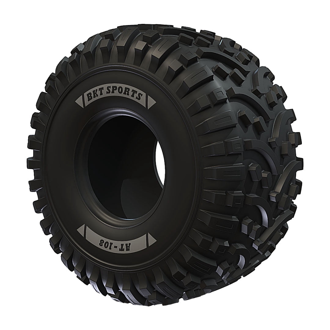 BKT AT108 ATV 25X10.00-12 50J C OVERVIEW The BKT AT108 ATV is designed to be a solid performer on dirt or hard surfaces and features a nylon reinforced casing, natural rubber tread compound, and an innovative tread pattern that combines angled lugs with cleats and wraparound lugs at shoulder to boost lateral traction.