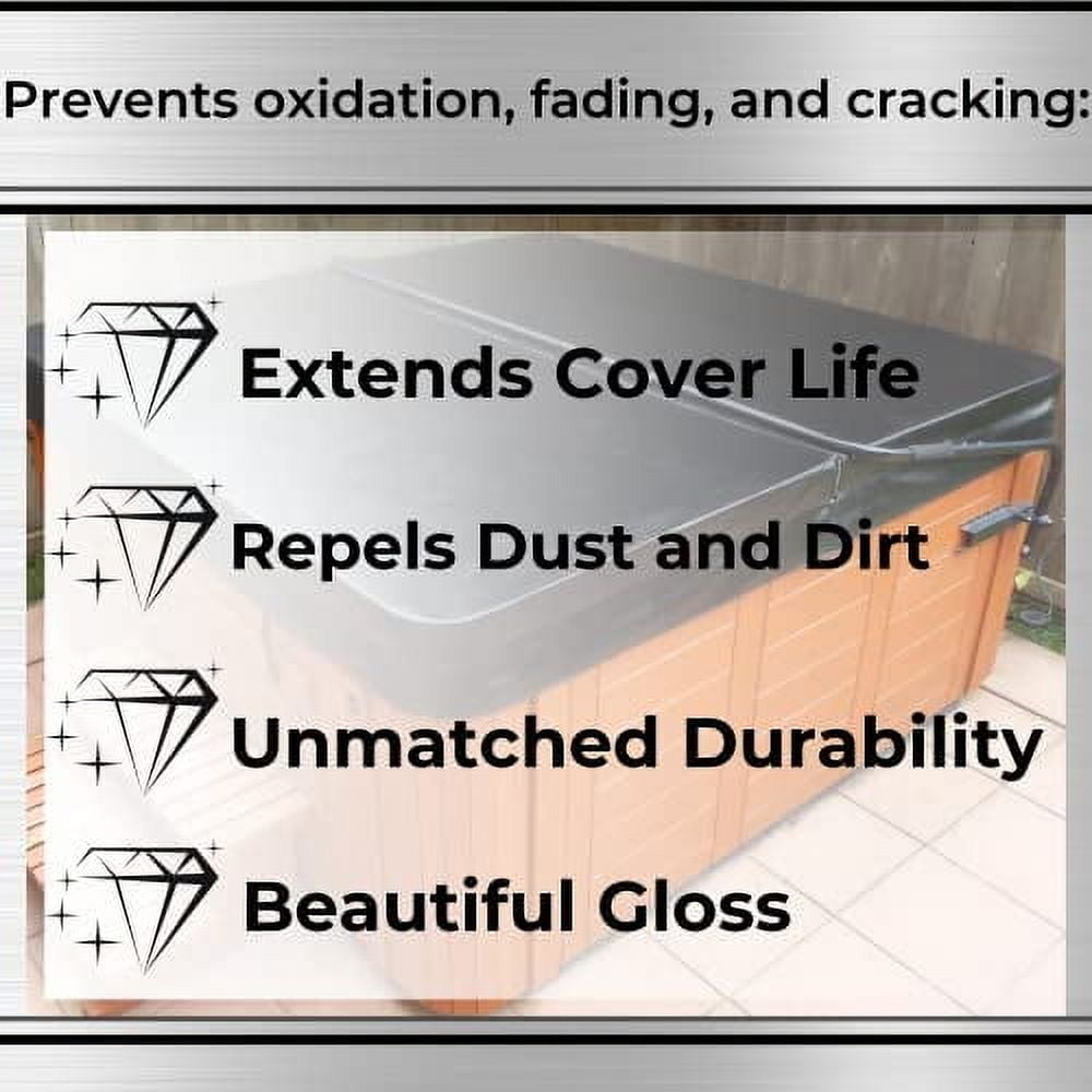 Introducing the ultimate solution for spa cover care – our spa cover treatment, designed for those who demand the highest level of protection, restoration, and shine for their spa covers. this innovative formula is the key to maintaining the beauty of your spa cover, providing unmatched durability and uv protection to keep your spa looking pristine for years to come. ideal for both new and older spa covers in need of rejuvenation, our treatment not only restores your cover to its original glory but also ensures it stays that way. enhanced with superior uv protection, our spa cover treatment shields your cover from the damaging effects of the sun, preserving its color and integrity even in the harshest environments. additionally, it’s equally effective on the external plastic parts of your spa, revitalizing the color and maintaining its vibrancy. loaded with a generous amount of uv protectants, our product offers unparalleled defense against fading and wear. to achieve the best results, ensure your spa cover is clean and dry before application. simply spray the ultimate uv/restore spa cover treatment evenly across the surface and wipe it dry. for first-time treatments, we recommend applying a second coat after the first has fully dried, enhancing the bond to the surface and boosting durability. transform and protect your spa cover with our ultimate uv/restore spa cover treatment, and enjoy a refreshed, like-new appearance with lasting protection.