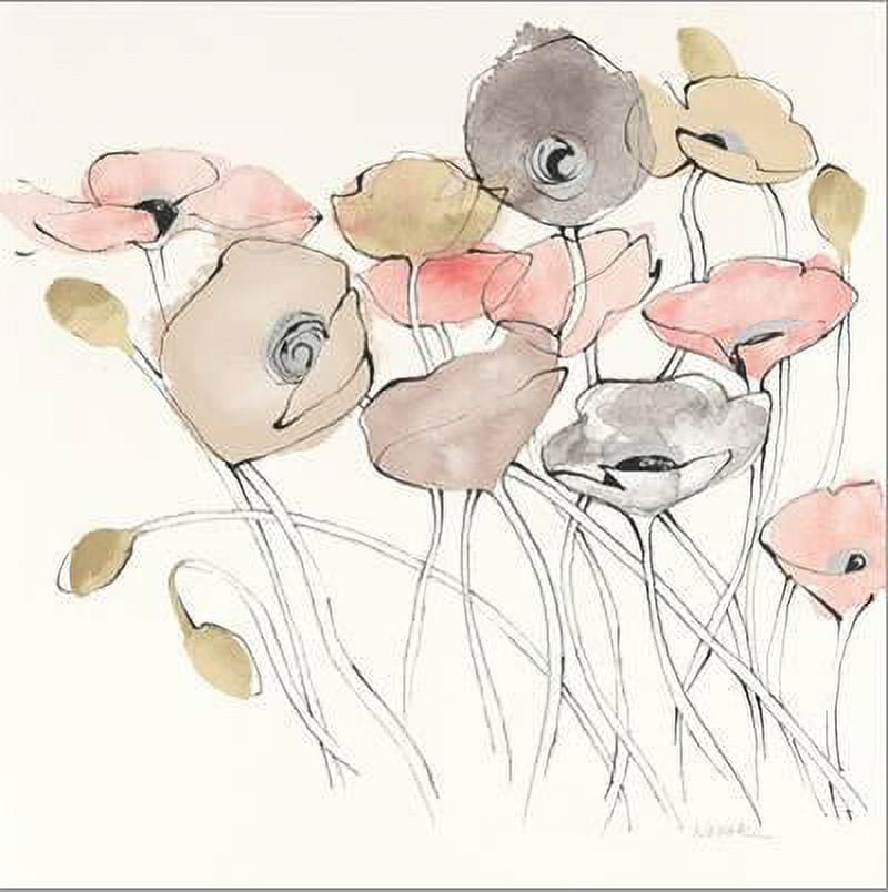 Black Line Poppies I Watercolor Neutral, Botanical Stretched Canvas Wall Art by Shirley Novak Sold by ArtCom