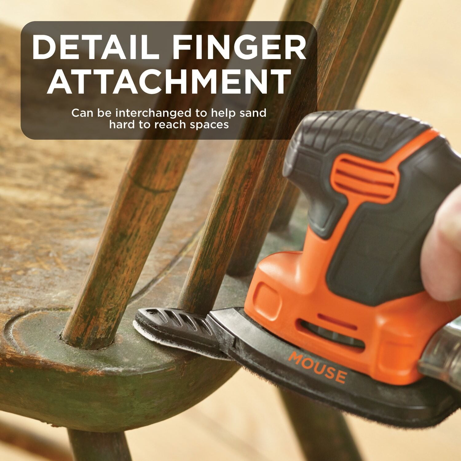 3-position grip for control and ease of use in many applications Compact size gets into tight spaces and maximizes user control An included detail finger attachment can be interchanged to help sand hard to reach spaces Hook and loop system helps make paper changes easy Features high-performance dust collection with micro-filtration for a clean workspace