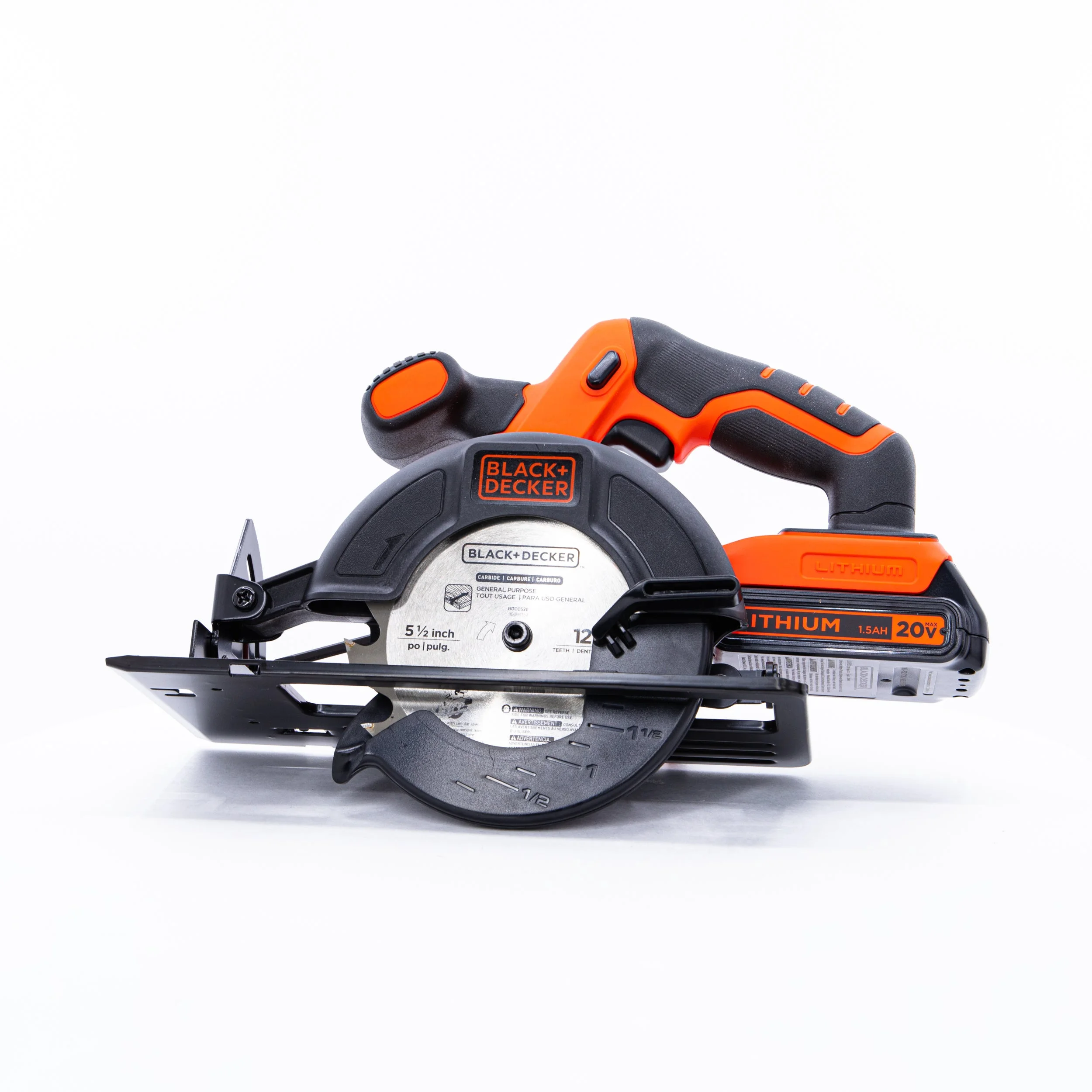 The BLACK+DECKER BDCCS20C 20-Volt Max Lithium-Ion Cordless 5-1/2 in. Circular Saw, Battery Included is designed with a powerful high torque motor. This saw features a tool free Depth of Cut and an easy to use bevel adjustment which allows for accurate angled cuts. An included 5-1/2″ blade provides smooth and fast cutting ideal for tough, everyday jobs. The compact design is great for ease of use. This tool works with the entire Black & Decker 20V Max* system.