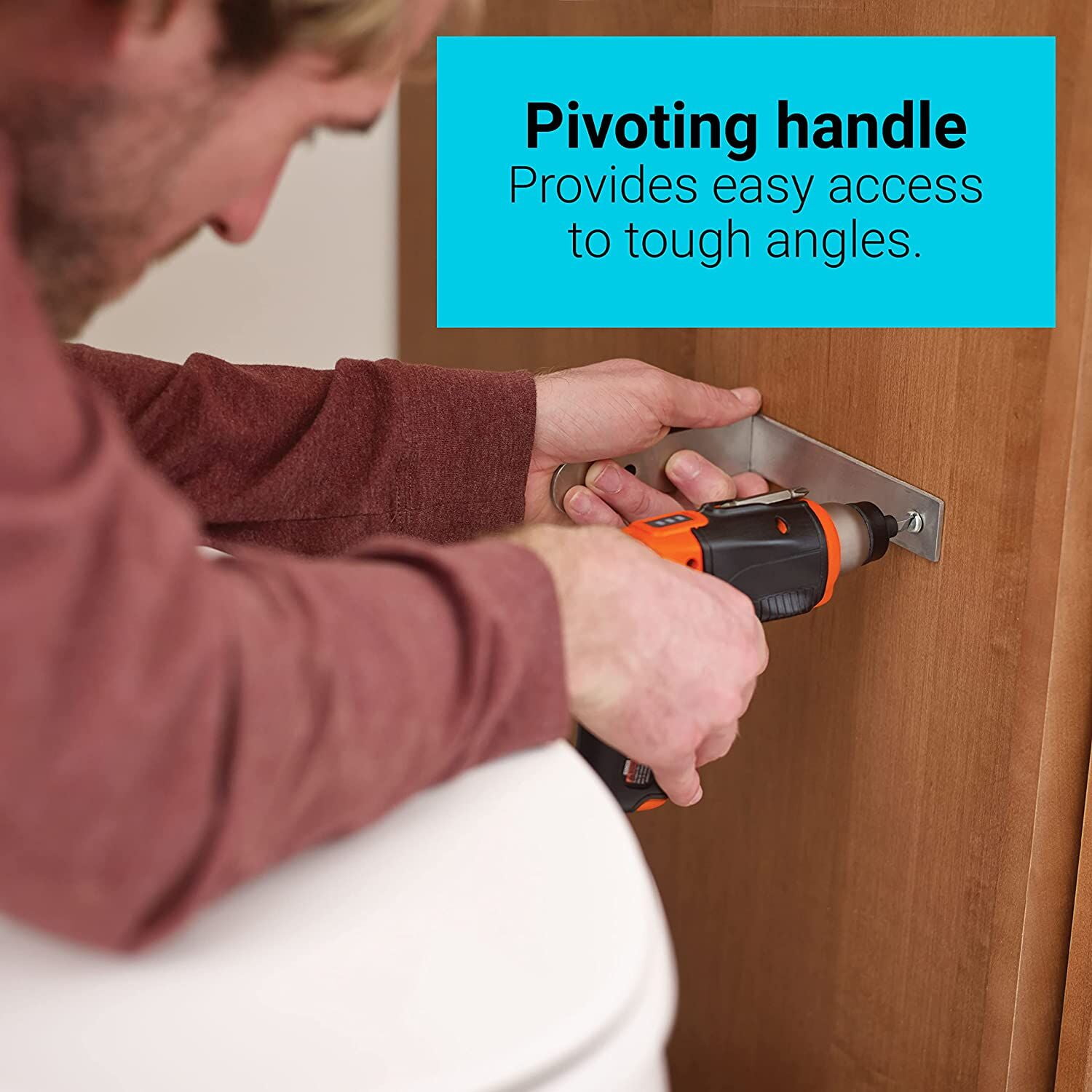 When it comes to quick household repairs, the BLACK+DECKER 4V MAX cordless pivot screwdriver certainly makes things a little easier. It’s compact, lightweight, and a cinch to maneuver in cramped spaces thanks to its pivot function. An over-molded handle and finger grip help keep you comfortable from start to finish. The built-in LED work light illuminates dark areas and your worksurface, while the magnetic bit holder keeps an extra bit on standby. Plus, this screwdriver is designed with a battery status indicator, so you’ll always know how much power you have left. And it also comes with an accessories kit that’s perfect for hanging pictures and basic screwdriving tasks.