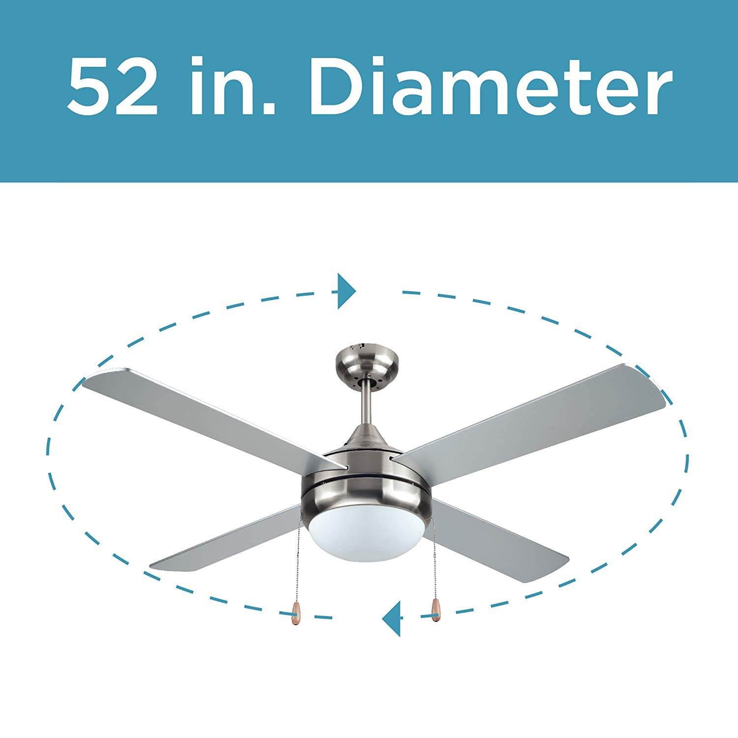 VERSATILE DESIGN – 52 inch Ceiling Fan in brushed nickel body brings a contemporary edge in any room. Works well in an indoor setting, at home or in the office. Elegant silver finish of the ceiling fan blades perfectly complements any room interior, from classic style to modern minimalist, industrial or Art Deco. 3-SPEED AIR FLOW RATE – 3 reversible plywood blades in mahogany finish keeps your space well-ventilated, allowing you to select from Low, Medium or High speed. Provides efficient cooling of up to 4800 CFM. Perfect for the bedroom or living room, allowing fresh air to fill and move around your space. WHITE FROSTED GLASS LIGHT KIT – Offers a sleek and sophisticated cover for lighting (bulbs not included) and illuminates without hurting your eyes. Allows a simple yet inviting lighting accent to any room. CONVENIENT OPERATION – Easy-to-operate and compact hand held remote control lets you adjust air flow speed and turn/off the light wherever your are sitting or lying down. No need to get up to pull on a chain or reach out for a switch! FULL SATISFACTION – Combining function and style, this 52-inch Ceiling Fan is all you need to provide ample ventilation and lighting on your living space! We are offering a 1-year limited , so should you experience any quality issues, simply let us know and we’ll do everything we can to keep you satisfied with your purchase!