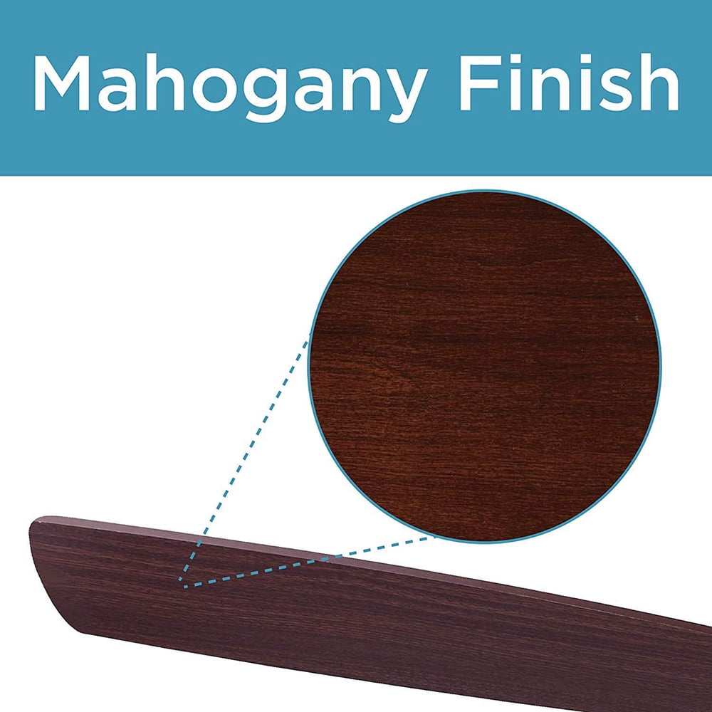 52-inch blade span that helps circulate air in entire living space Ideal for use in bedroom, office or living room High-quality white frosted glass case covers lightbulbs Features 3 reversible plywood blades with mahogany finish 2, 13W E26 bulbs required for light fixture Specifications: Location: Indoor CFM (high/medium/low): 4800/3360/1920 Color: Mahogany Weight: 15.4 pounds Dimensions (L x W x H): 52 x 52 x 17.5 inches Manufacturer warranty: 1-year warranty