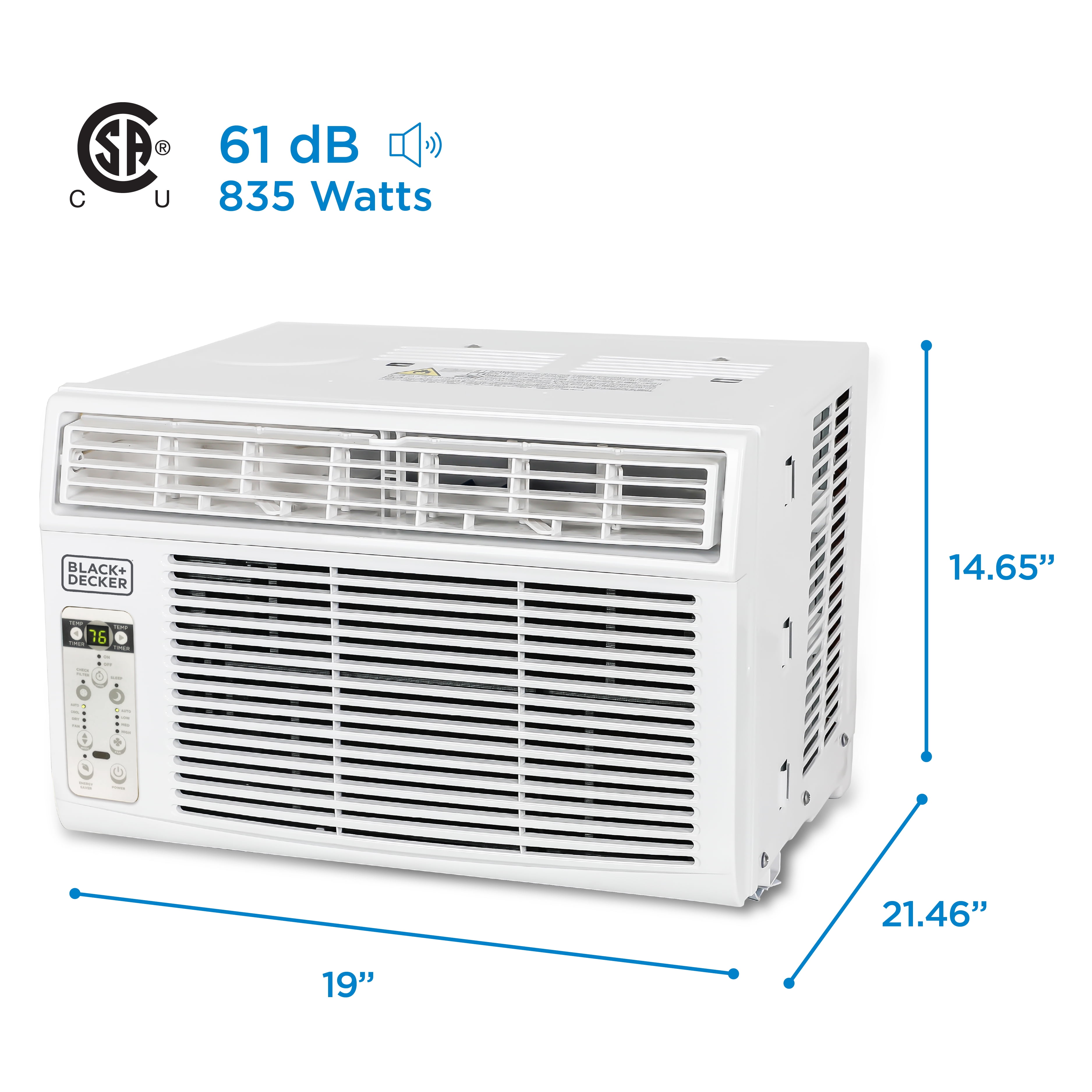 This BLACK+DECKER 10000 BTU window air conditioner is a must-have for instant cooling relief when you need it in any room in your home. Bedrooms, living rooms, home offices and ideal for apartments—this small window air conditioner is a perfect addition when the warm weather months roll in. With a high-quality compressor offering 10,000 chilling BTUs, you can circulate air with the fan only function or cool a room up to 450 square feet. This window unit uses R32 refrigerant which has zero impact on the ozone layer, so you can stay comfortable indoors without harming the planet. In fact, this 10k BTU window air conditioner improves energy efficiency by up to 10% compared with R-410A. Because R32 is more efficient than R-410A, less refrigerant is needed, increasing the life of the air conditioner and the planet, Enjoy the electronic digital display and a handy remote control, so you don’t have to get up from the couch in humid, sweltering weather. 12 CEER, 3.52 EER 835 Watts, 9.72 amps, 626.25 kWh. 115v, 60Hz 4.5A. 3-prong LCD (5-15P) plug type. Window installation is quick, efficient and seamless. Features low, medium, and high fan-only function well as dehumidifier. Components: Window AC, Remote Control, All Necessary Installation Pieces. CSA safety certified. Product consists of 28% copper, 26.6% steel, 8% aluminum, 6.6% plastic, 13.2% galvanized metal, 2% HIPS, 2.01% ABS, 2% EPS foam, 5424% paper, 3.59% polyethylene foam, 3.76% other material. ISTA-6A packaging included.