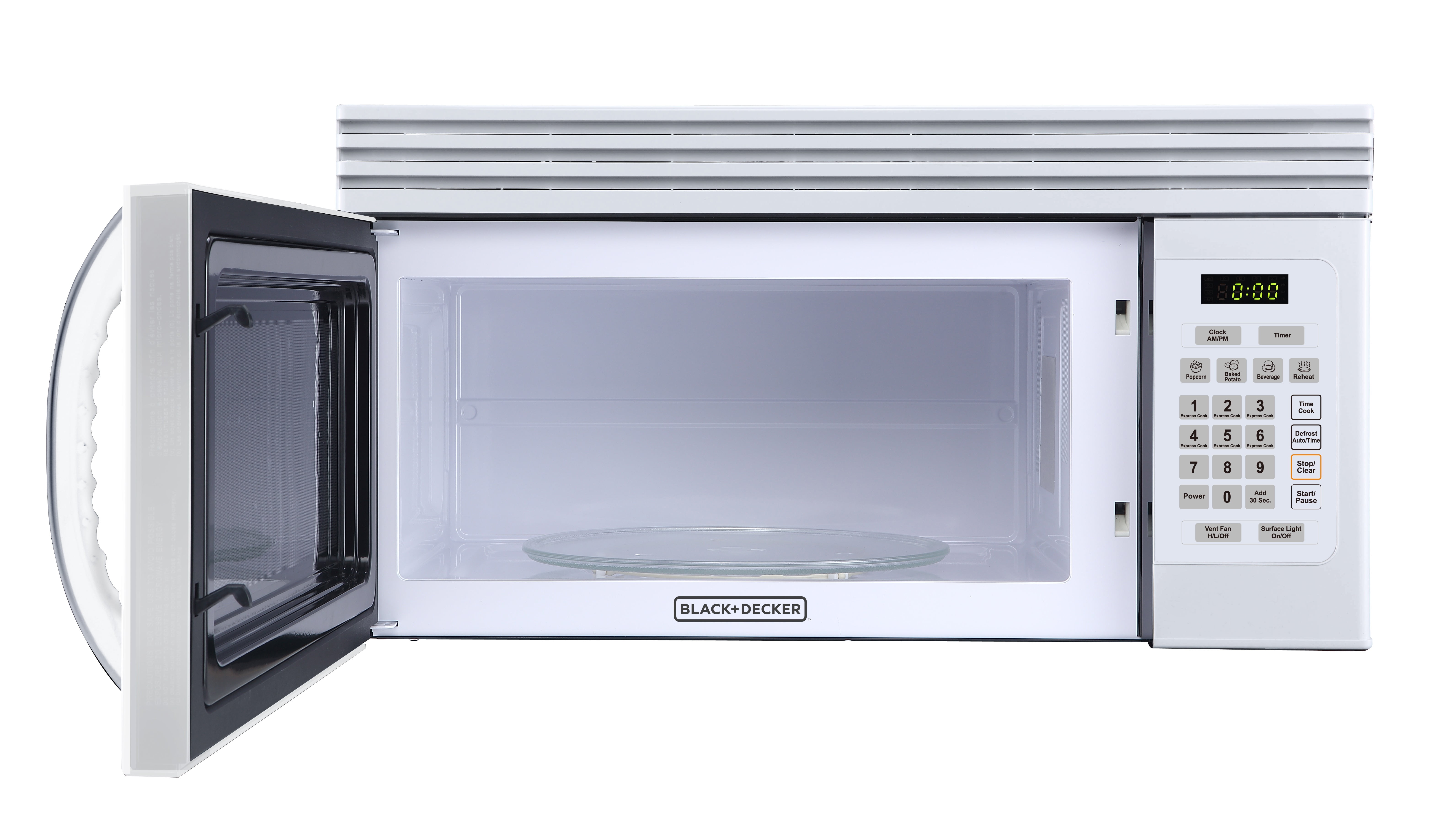 Get your favorite foods cooked easily and conveniently in this over the range Black & Decker 1.6 Cu. Ft. Microwave. This sleek and efficient appliance has 1000 watts of cooking power. Featuring a modest white finish, this unit has 10 different power levels to fulfill all of your cooking desires. When you want to have something ready to eat fast, the 30 second express cooking mode ensures to cook your meal in a snap. The LED display is bright and easy to read, along with the handy kitchen timer and clock for simple meal planning. The glass turntable is smooth and easy to clean, plus it rotates for optimal cooking. This over the range microwave is a smart and efficient choice for the style and feel of your kitchen.
