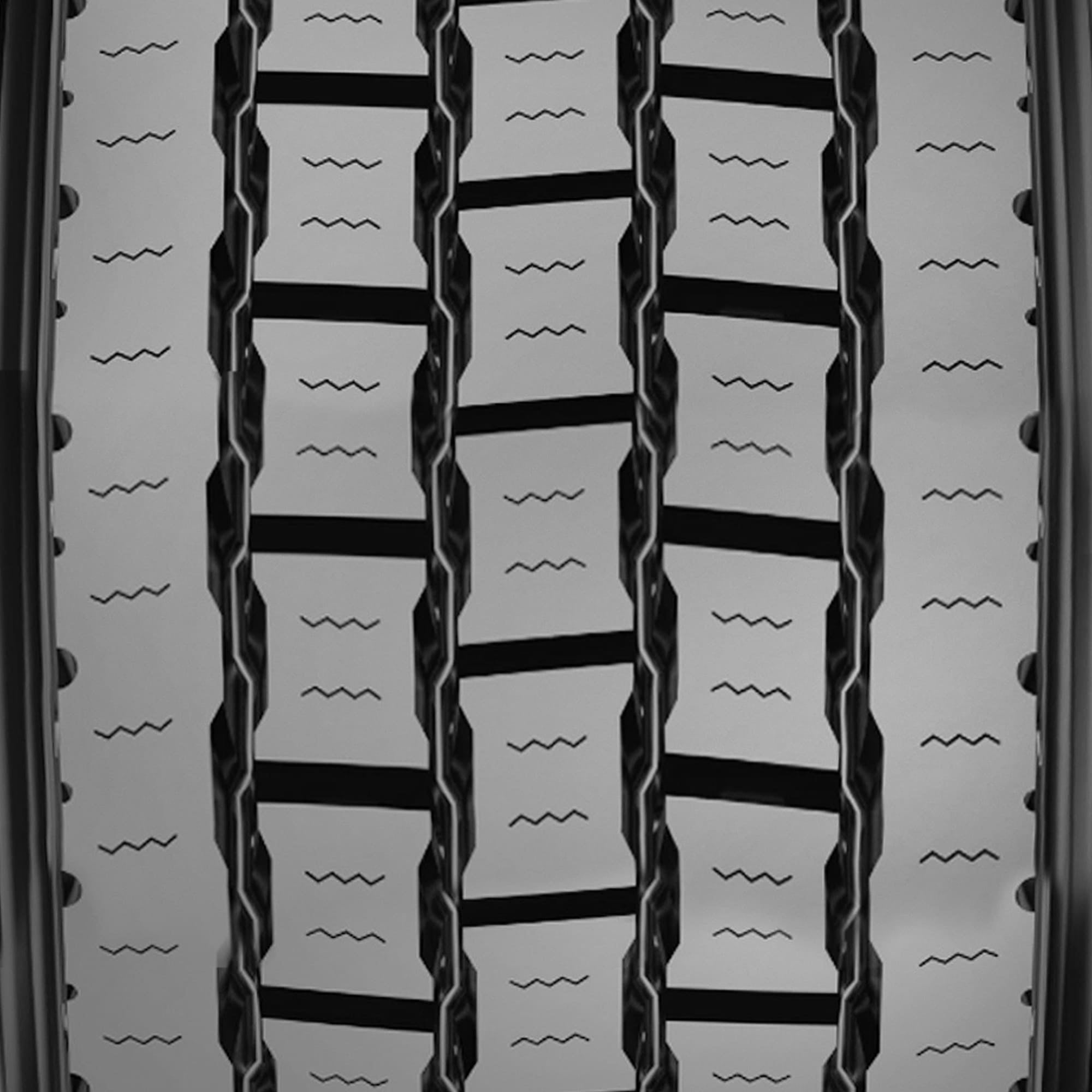 Designed for use on the drive axle of semi-truck in on-highway applications Deep tread depth ensures longer tread life Solid shoulder ribs improve stability and control uneven wear Three-row aggressive tread block arrangement boosts traction and resists tread squirm Dual-cut tread block siping enhances wet and snow traction Size: 11R24.5 Load Range: H Product May Vary From Picture Wheel/Rim Not Included