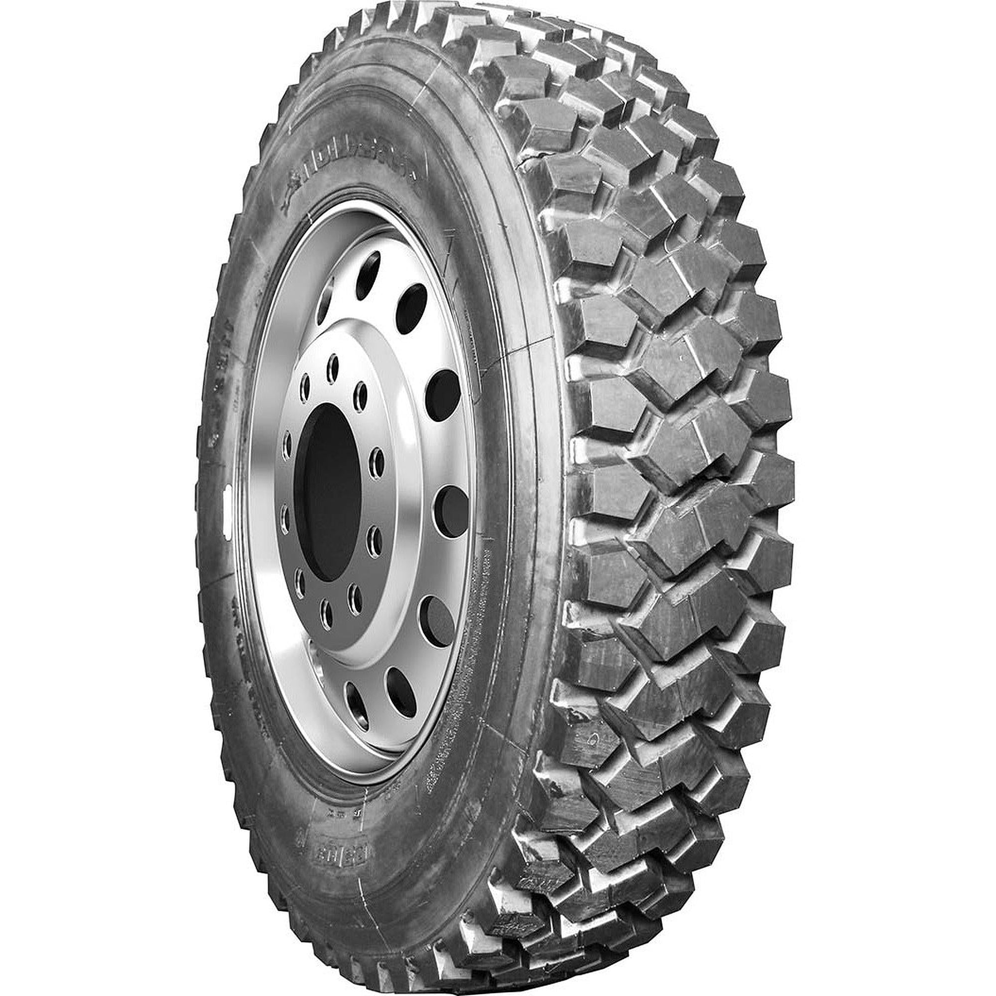 Designed for use on the drive axle of regional, dump, refuse, and ready mix trucks in on- and off-road applications Built with a cut and chip resistant rubber compound that protects the tire from cutting, punctures, and chunking when driving off-road Large, uniquely shaped tread blocks enhance traction and performance on- and off-road Stone eject grooves force rocks, stones, water, and other unwanted material out of the tire to protect the casing from damage for a longer tread life and easier retreading Deep tread depth allows for strong performance, even as the tire wears Size: 11R22.5 Load Range: H Product May Vary From Picture Wheel/Rim Not Included