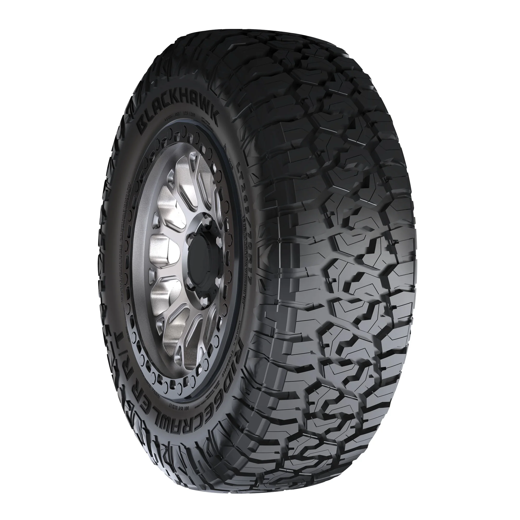 Blackhawk’s Ridgecrawler R/T is a rugged terrain tire designed for light trucks and SUVs. It features a tough, damage-resistant tread compound and aggressive block tread. With a dense network of sipes, making it suitable for severe winter conditions and earning it the 3 Peak Mountain Snowflake certification. The tire’s shoulder lugs extend onto the sidewall to provide lateral traction. Additionally, the Ridgecrawler R/T comes with a 60,000 mile limited manufacturer’s tread life warranty (45,000 miles for LT sizes).