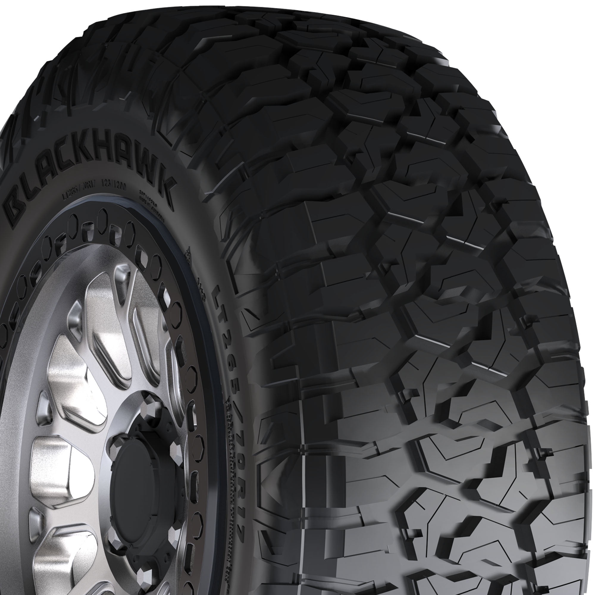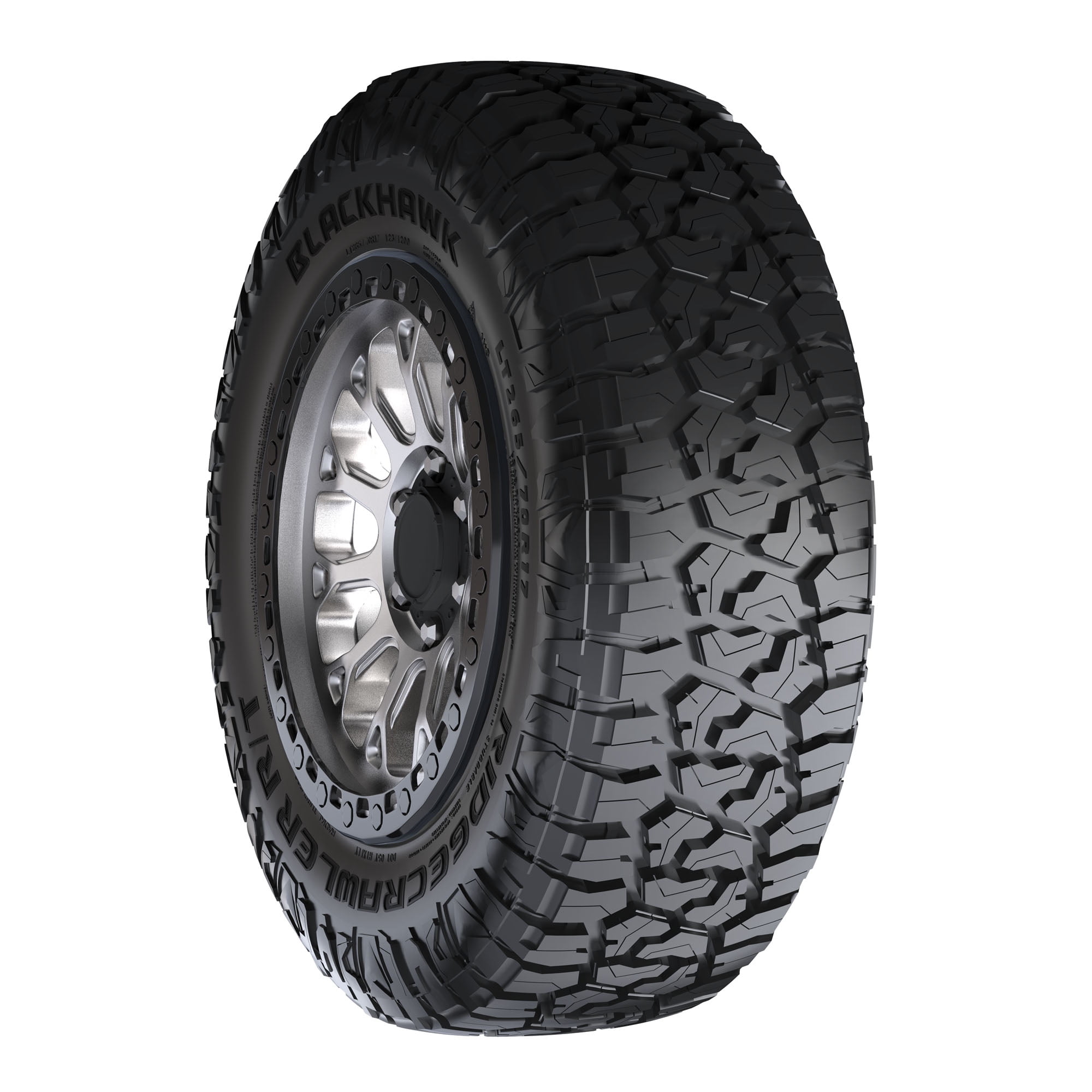 BlackHawk Ridgecrawler R/T 275/65R18 116T XL OVERVIEW Blackhawk’s Ridgecrawler R/T is a rugged terrain tire designed for light trucks and SUVs. It features a tough, damage-resistant tread compound and aggressive block tread with a dense network of sipes, making it suitable for severe winter conditions and earning it the Three Peak Mountain Snowflake certification. The tire’s shoulder lugs extend onto the sidewall to provide lateral traction. Additionally, the Ridgecrawler R/T comes with a 60,000 mile limited manufacturer’s tread life warranty (45,000 miles for LT sizes).