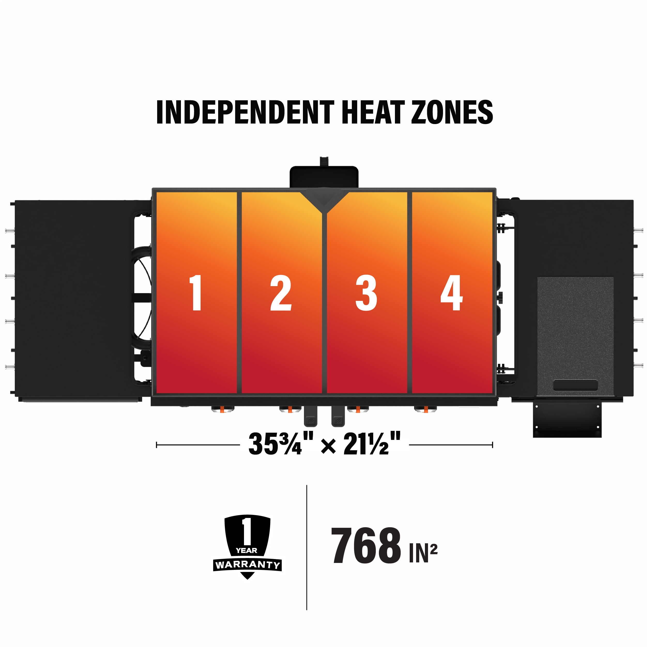 Blackstone Original 4-Burner 36″ Propane Omnivore Griddle with Hood and Folding Side Shelves The Omnivore Griddle Plate is tested to heat more evenly across the griddle top, have better thermal shock stability, and use less fuel to maintain high heat Integrated ‘X’ brace hood is designed to increase rigidity in hood and protect griddle surface between uses 768 square inches of cooking space with 4 independently controlled burners Dual folding side shelves and a side shelf cutting board make meal prep more convenient Magnetic tool bar and side shelf tool hooks help keep cooking utensils close at hand Includes a bottle opener and paper towel holder 38,000 BTUs – The Omni griddle plate requires fewer BTUs to maintain optimal cooking temperatures, using less propane per cook 1-year limited warranty Customer Service: +1 (435) 252-3030 Ext. 1 Model #2420