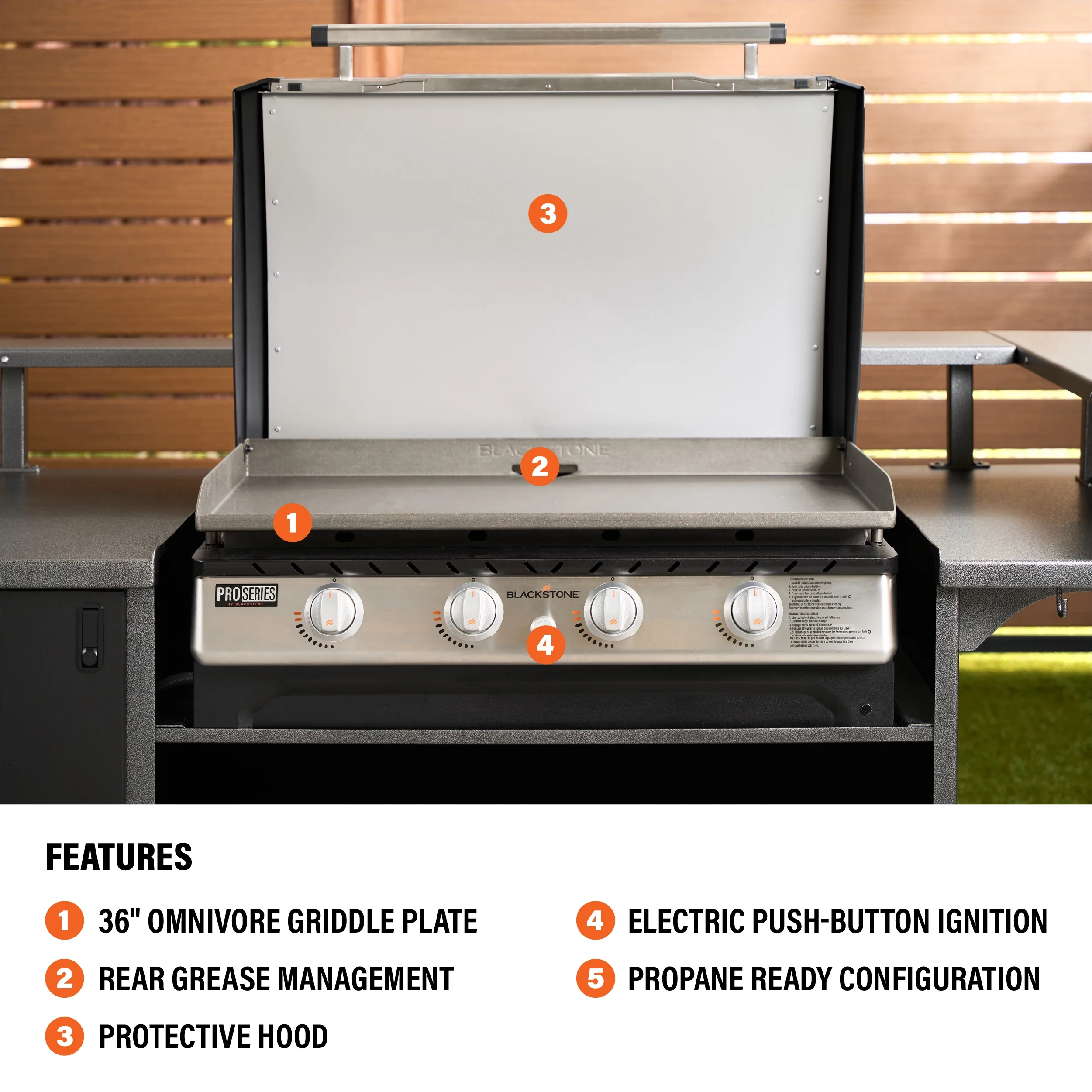 Blackstone Pro Series 4-Burner 36″ Propane Omnivore Drop-in Outdoor Griddle with Hood