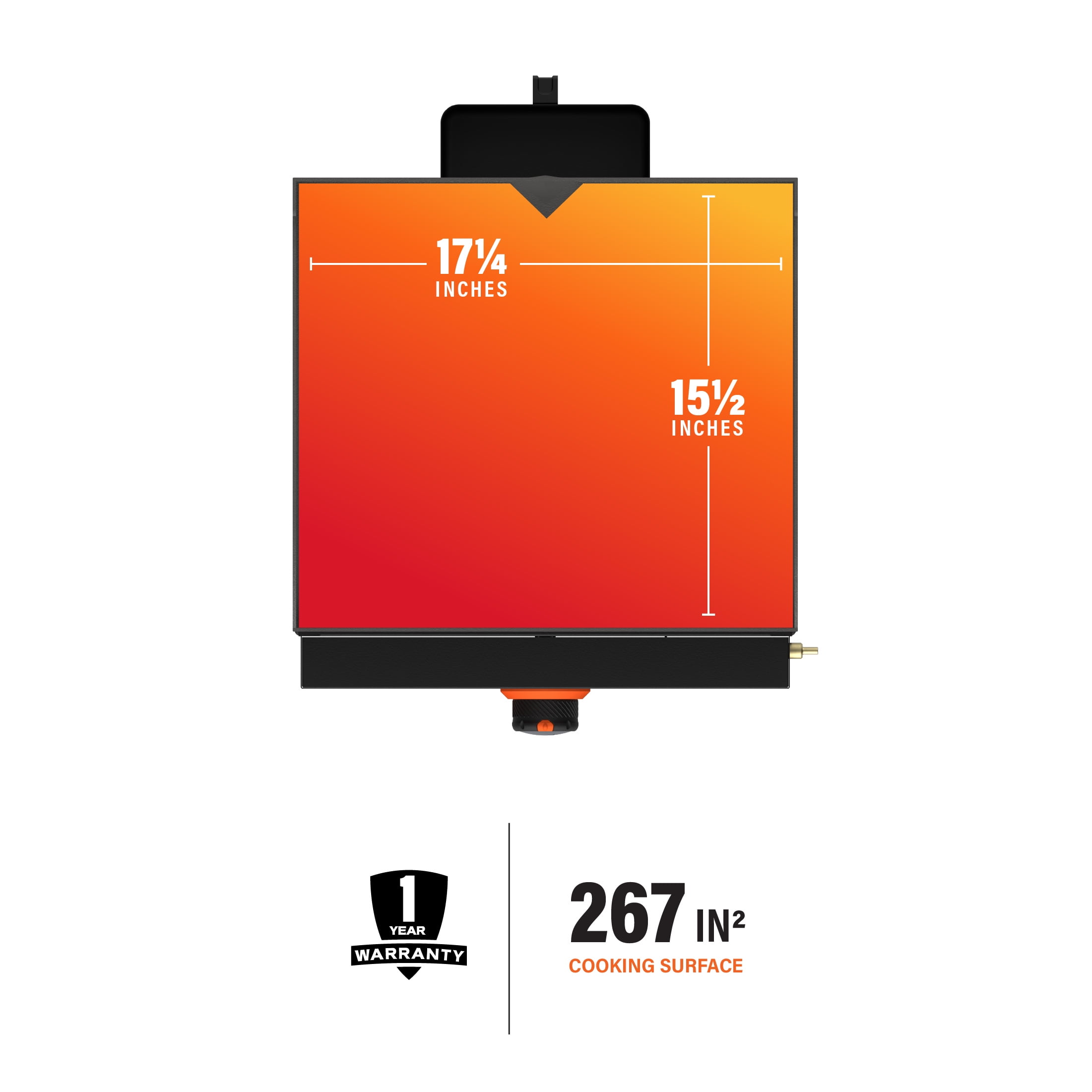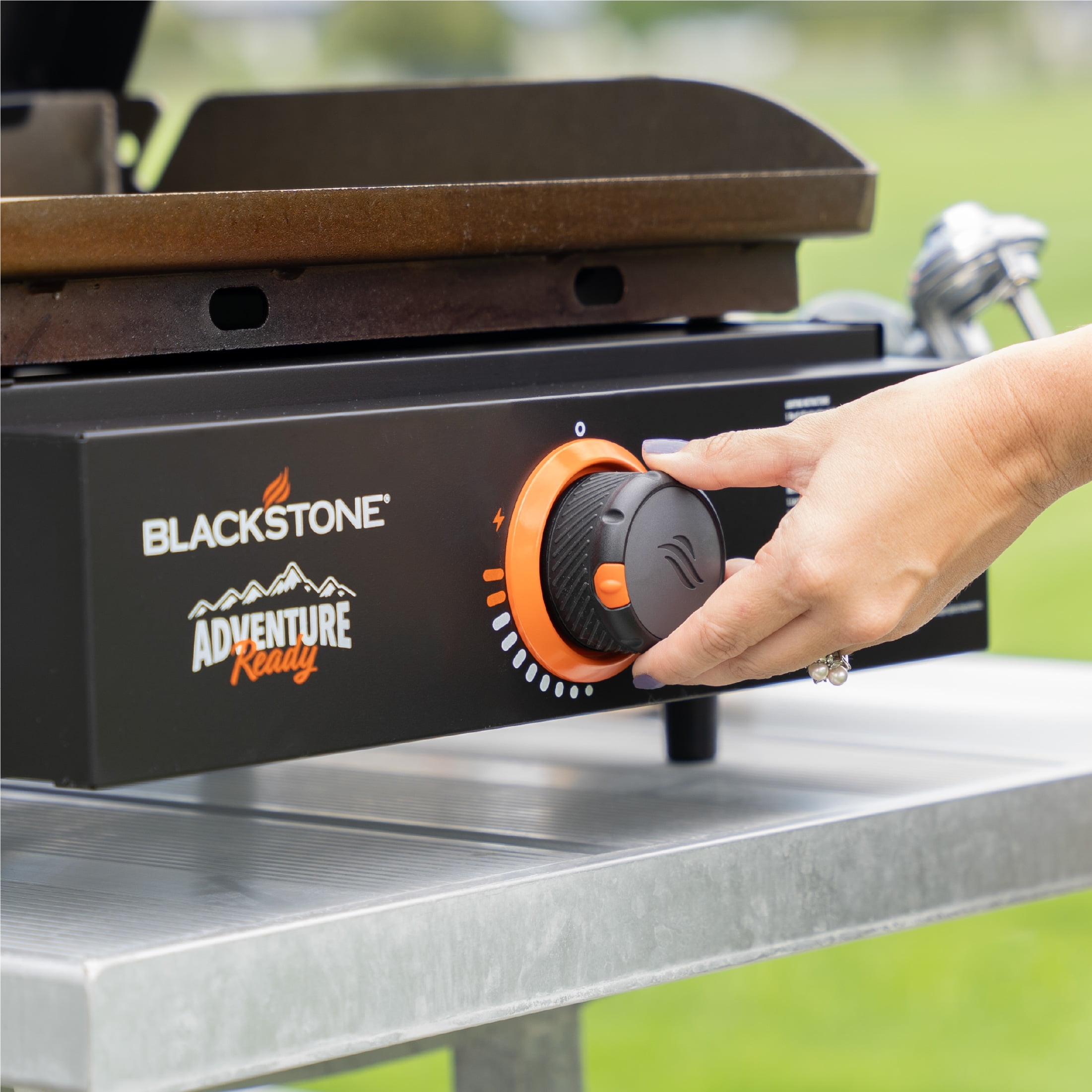 Blackstone 17″ Adventure Ready Propane Griddle Bundle Includes a 17″ griddle, protective hard cover, and carry bag 267 square inches of cooking space and 12,500 BTUs Hard cover protects griddle plate from scratching Carry bag is made of heavy-duty 600D polyester and has handles to help transport your griddle Model #2273