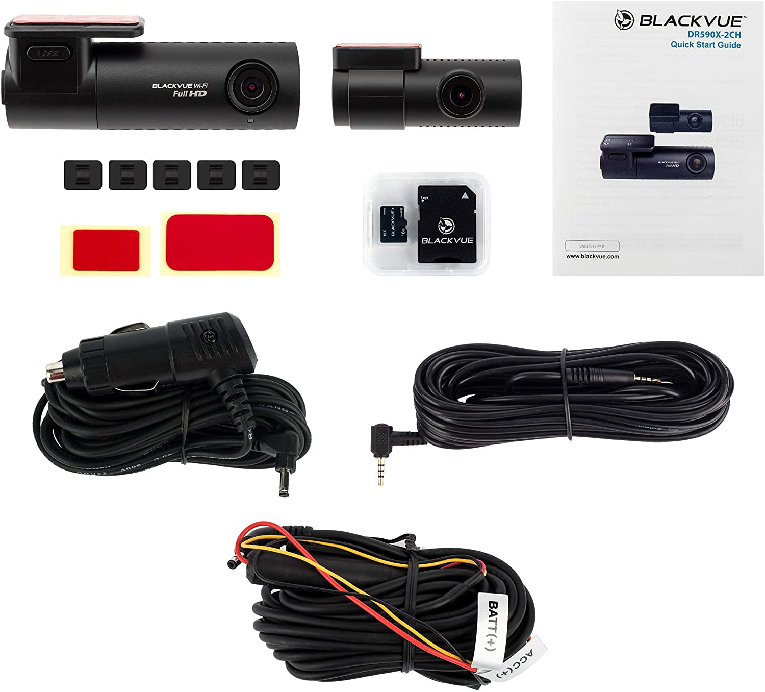 BlackVue DR590X-2CH Outstanding Full HD quality in a small form factor, featuring Sony’s STARVIS image sensor in the front camera for better clarity in low light. Built-in Wi-Fi: easily adjust settings and transfer videos to your phone with the BlackVue App. Read more DUAL-FULL HD WI-FI DASHCAM Full HD 1080p front and rear @30fps: the DR590X-2CH records Full HD 1080p videos of the front and back of your car at 30 frames per second, in a 139-degree wide view angle. With the front camera’s Sony STARVIS imaging sensor, you get awesome image clarity day and night. Built-in Wi-Fi: connect to your dashcam with the BlackVue App to adjust settings, check the view from the front and rear cameras or transfer files to your mobile device. Read more NATIVE PARKING MODE With optional Hardwiring cable DR590X can be hardwired to your vehicle’s fuse panel for Parking Mode with the optional Hardwiring cable. The dashcam will switch to Parking Mode automatically when vehicle ignition is turned off. Voltage cutoff and timer can be set in the BlackVue App. Parking Mode accessories support DR590X Series is also compatible with all BlackVue Parking Mode Kits and Batteries. Read more ACCESSORIES External GPS Receiver G-1EU The External GPS Receiver adds speed and location data to your videos. Power Magic Battery Pack B-112 Enjoy Parking Mode recording without hardwiring your dashcam. No installation required (Plug & Play) Power Magic Ultra Battery B-124X Power your dashcam in Parking Mode for longer. Protect your vehicle’s battery. The Expansion Battery B-124E Connect an Expansion Battery to the Power Magic Ultra Battery to more than double your capacity and Parking Mode time. Read more