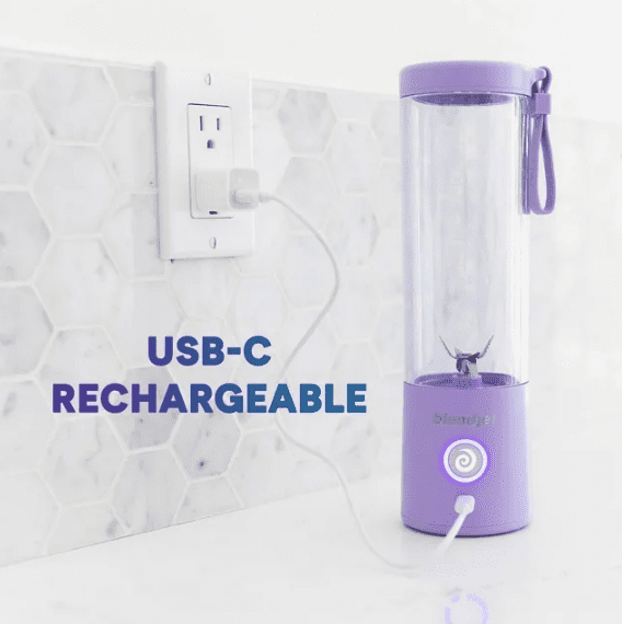 Portable: Perfect for jetting around town. Lightweight & durably constructed. Stash it in your bag & drink straight from the jar. Powerful: Big blender performance, compact size. Patented TurboJet technology powers through anything in 20 seconds flat: ice, frozen fruit, leafy greens & more. USB – Rechargeable: Lasts for 15+ blends & recharges quickly. Water-resistant USB-C charging port. Reversible cable included. Self-Cleaning: Just add water, soap & blend. Rinse & you are ready to go! Specifications: Battery-operated 7.4V motor, 6-point stainless steel blade, 4000 mAh rechargeable battery (via any USB port), 3.15 x 10.65, fits in standard cup holders, Weighs 1.34 lb, Hand wash only Orbiter Lid included for easy drinking!