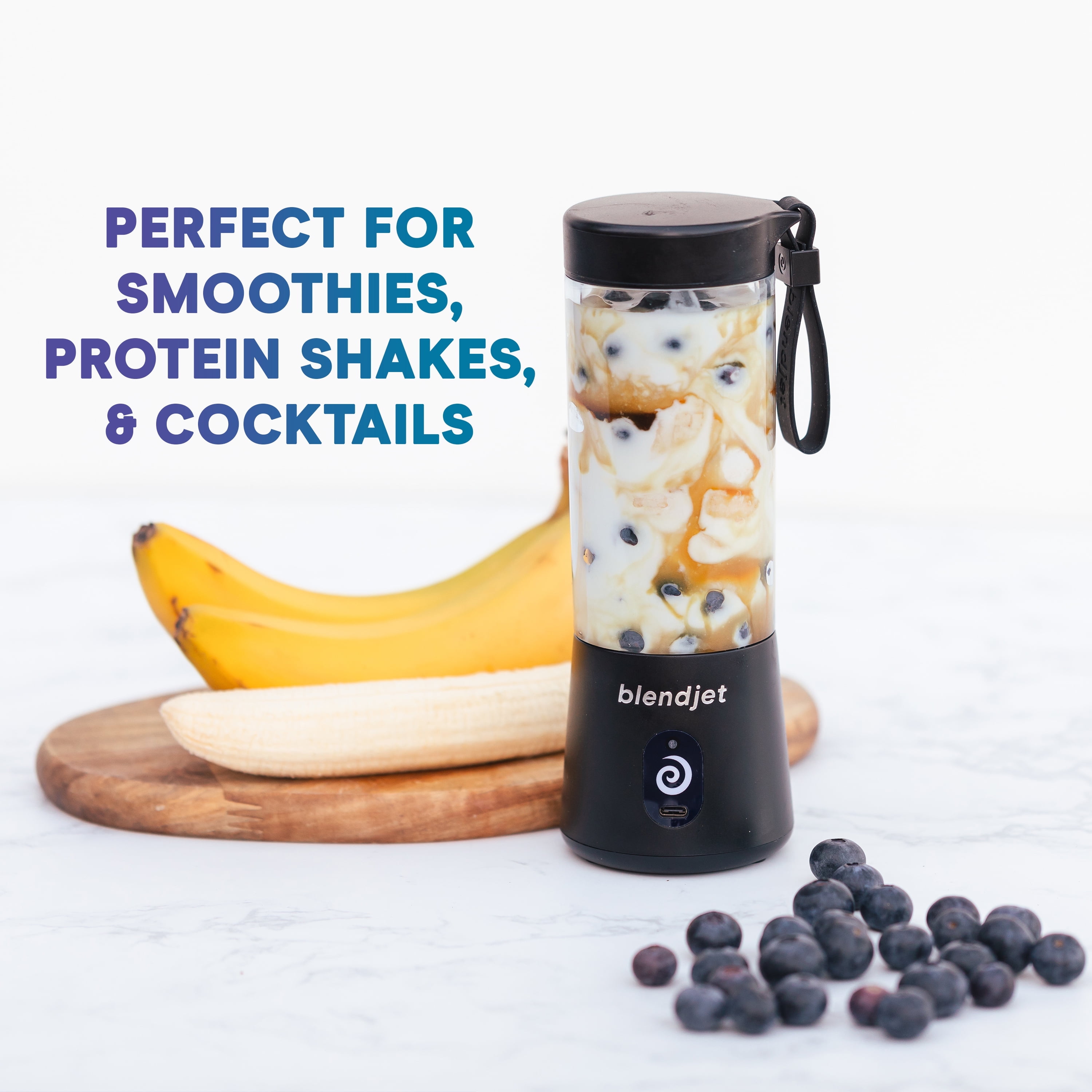 The Original Portable Blender. BlendJet2 is a new game-changing 20 oz portable blender with the power to reinvent your routine and make healthy choices happen anywhere — no cord or outlet needed. This triumph of technology is USB-C rechargeable, making it easy and convenient to blend smoothies, protein shakes, margaritas, frozen lattes and more, at home or on the go. BlendJet 2 is perfectly sized to fit in a cup holder or travel in your bag, and cleanup is a breeze: just blend water with a drop of soap, rinse, and you’re ready for your next blended creation. Patented TurboJet technology powers through ice, frozen fruit, leafy greens and other tough ingredients. BlendJet is more than a blender, it’s a way of life. We invented the original portable blender so you can make your favorite blended beverages without the limitations, hassle or cleanup of a big blender. The ability to be anywhere and blend everywhere has defined a new category and shaken up the industry. Whether your idea of wellness is a fresh fruit smoothie at the office, a protein shake at the gym, or chilling with a frozen margarita on a beach, we’re excited to serve up a convenient way to help you be the healthiest and happiest version of yourself.