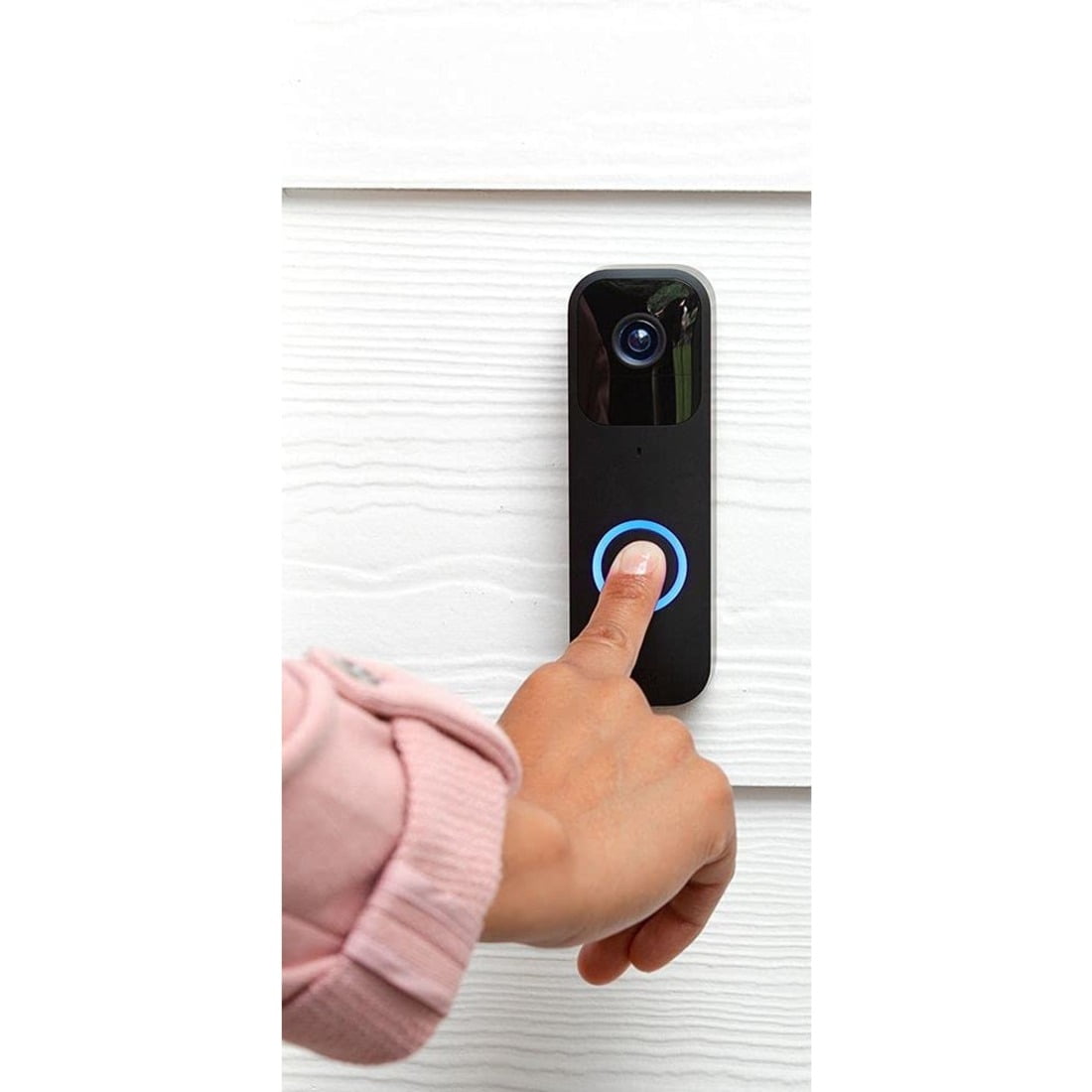 Blink Smart Wi-Fi Video Doorbell Wired/Battery Operated with Sync Module 2 – Black Blink Video Doorbell Sync Module 2 2 1.5V non-rechargeable AA lithium metal batteries mounting kit (including corner mount, screws, and anchors) USB cable power adapter Blink – Smart Wi-Fi Video Doorbell – Wired/Battery Operated with Sync Module 2 – Black Description: Answer your door anytime, anywhere from your smartphone with 1080p HD day and infrared night video and two-way audio thanks to the Blink Video Doorbell. Experience up to two years of powerful battery life, custom alerts, privacy settings, and more. Designed for every home- Go wire-free or connect to existing doorbell wiring to also sound an in-home chime. Easy install- Set up yourself in minutes with the two included AA lithium batteries then connect to Wi-Fi in the app. Works with Alexa- Access live view, two-way talk, receive motion and chime alerts, arm and disarm your doorbell, and more. Choose to save and share clips in the cloud with a free 30-day trial of the Blink Subscription Plan. Pairing with a Sync Module 2 gives you the ability to expand your Blink system and experience additional features. When running the Video Doorbell on batteries, using the Sync Module 2 is recommended. Blink Smart Wi-Fi Video Doorbell Wired/Battery Operated with Sync Module 2 Black Features: Answer your door- anytime, anywhere Two-way audio, HD video, motion and chime app alerts and Alexa enabled — easy install 1080p HD day and infrared night video Two years of powerful battery life Designed for every home Easy install- set up yourself in minutes Access live view, two-way talk Receive motion and chime alerts Arm and disarm your doorbell, and more Go wire-free or connect to existing doorbell wiring Includes Blink Video Doorbell, two sync modules, two 1.5V non-rechargeable AA lithium metal batteries, mounting kit (including corner mount, screws, and anchors), USB cable, and power adapter