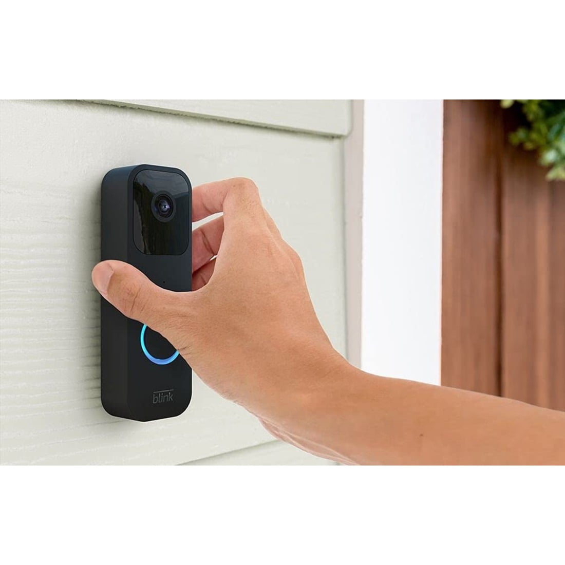 Sold as 1 Each. Welcome visitors and protect what matters most with this video doorbell. Video doorbell powered by two AA 1.5V batteries or via 16-24VAC existing chime wiring; Sync Module 2 powered by an included 100-220VAC to 5VDC converter. Experience the benefits of long-lasting battery life, custom alerts, privacy settings, and more. Operating temperature: -4 to 113 degrees Fahrenheit. Comes in black. Install wire-free and receive app alerts, or connect to your existing doorbell wiring to also sound your in-home chime. Choose to save and share clips in the cloud with a free 30-day trial of the Blink Subscription Plan or locally with the included Sync Module 2 and USB drive (sold separately). Package contents: video doorbell, Sync Module 2, two 1.5V non-rechargeable AA lithium metal batteries, mounting kit, USB cable, and power adapter. Safety Data Sheet. Features 2.4GHz 802.11b/g/n Wi-Fi connectivity. Provides 135-degree horizontal and 80-degree vertical field of view. Works with Alex: access live view, two-way talk, receive motion and chime alerts, arm and disarm your doorbell, and more. 1-year manufacturer limited warranty. Works with iOS 10.5 or later, Android 5.0 or later, or Fire OS 5.1 or later devices. Answer your door no matter where you are from your smartphone with 1080p HD day and infrared night video and two-way audio. Set up yourself in minutes, and connect to Wi-Fi in the app.
