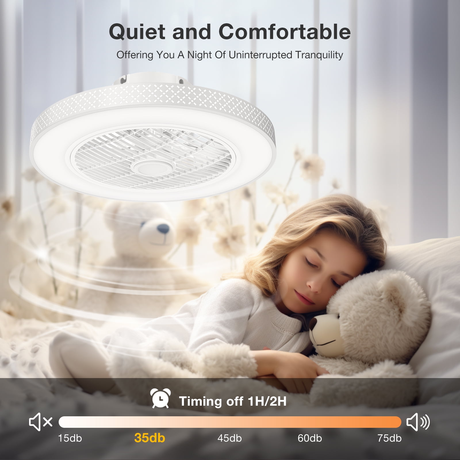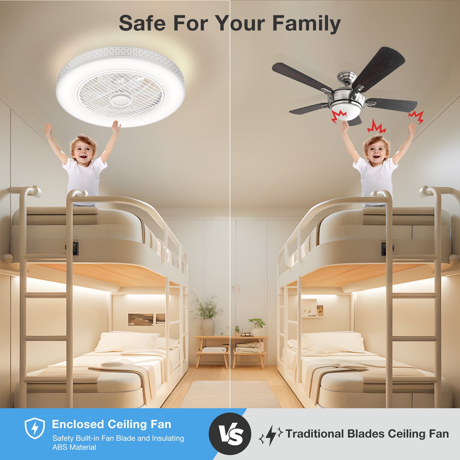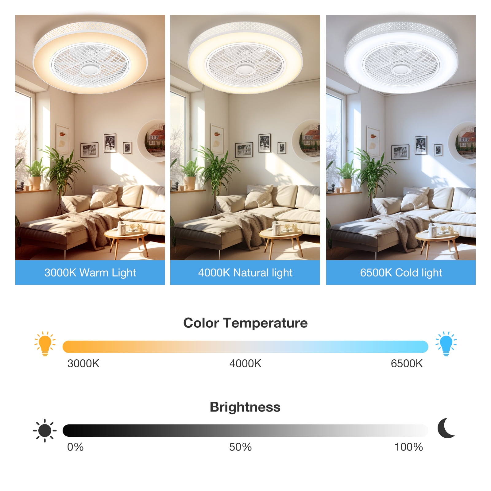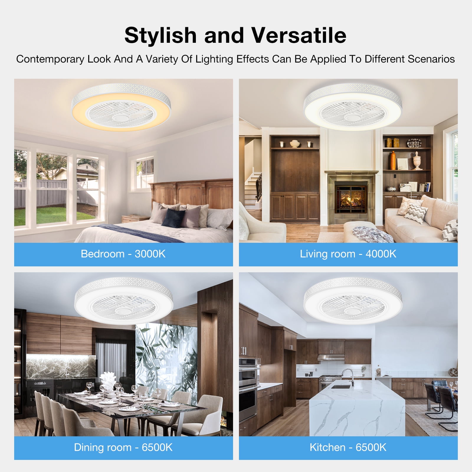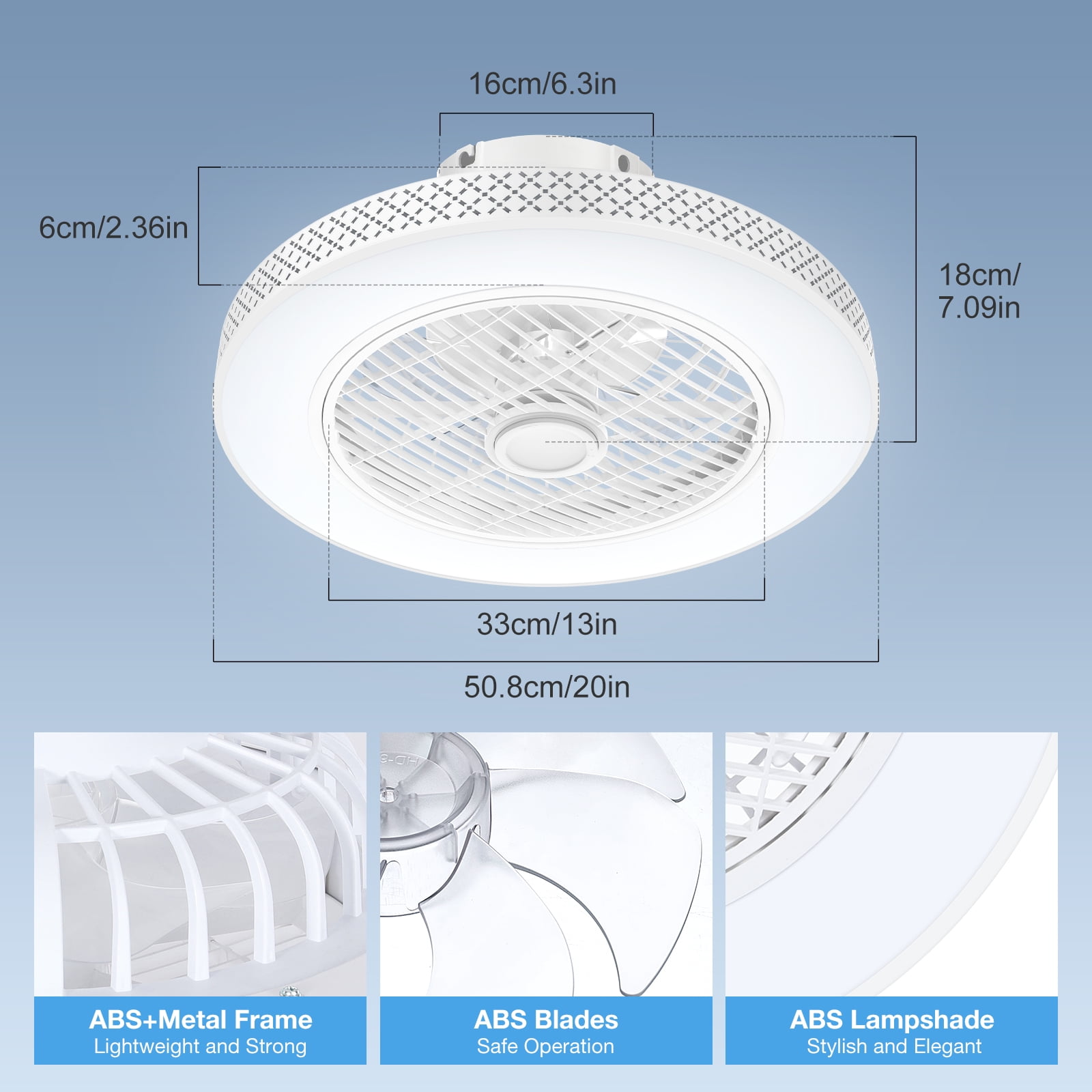 BLITZWILL 20 in Round Ceiling Fans with Lights, Dimmable Color Temperature and 6 Speeds, Remote & APP Control, Flush Mount Bladeless Reversible Motor, White