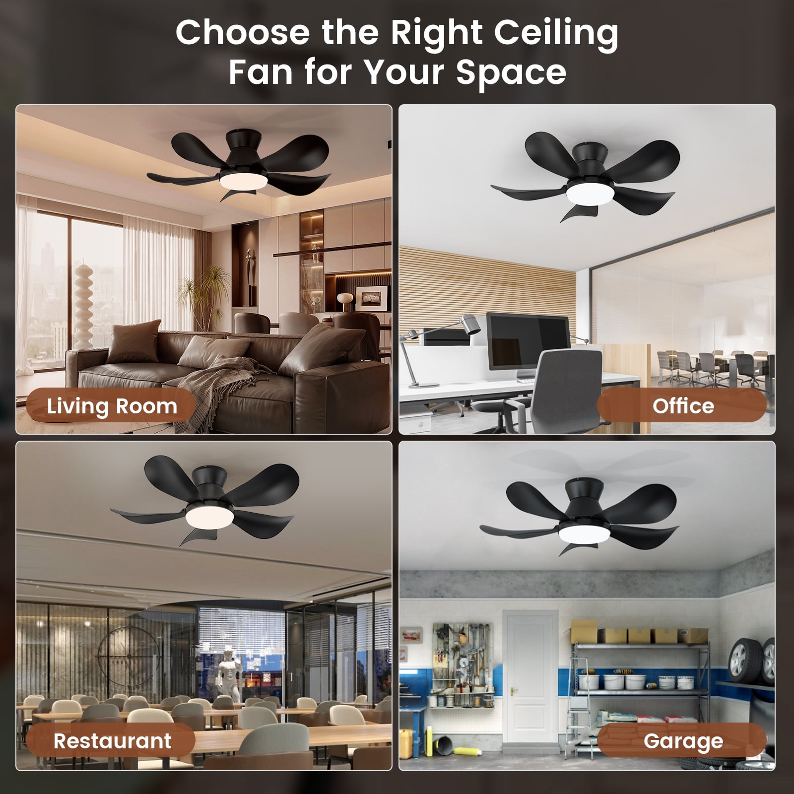 BLITZWILL Ceiling Fans with Lights and Remote & App Control,26 inch Low Profile Modern Ceiling Fans with 5 Reversible Blades,3 Colors Dimmable 6 Speeds Quiet, for Bedroom Kitchen Garage,Black