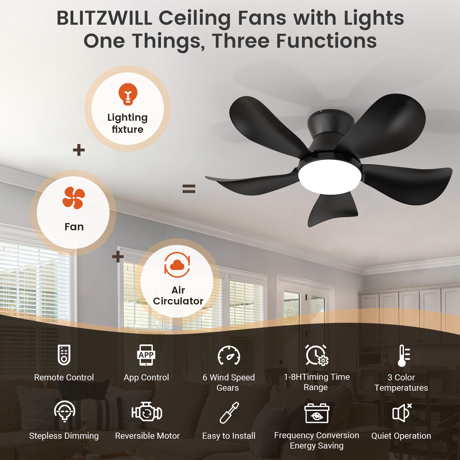 BLITZWILL believe that smart lighting should naturally become a part of life,we focuses on leveraging cutting-edge smart control technology to create high-quality and stylish lighting products.this ceiling fan features a powerful DC motor, six customizable wind speed modes, and dimmable LED lights. The convenient remote control allows you to effortlessly adjust settings, making it the perfect addition to any room in your home.
