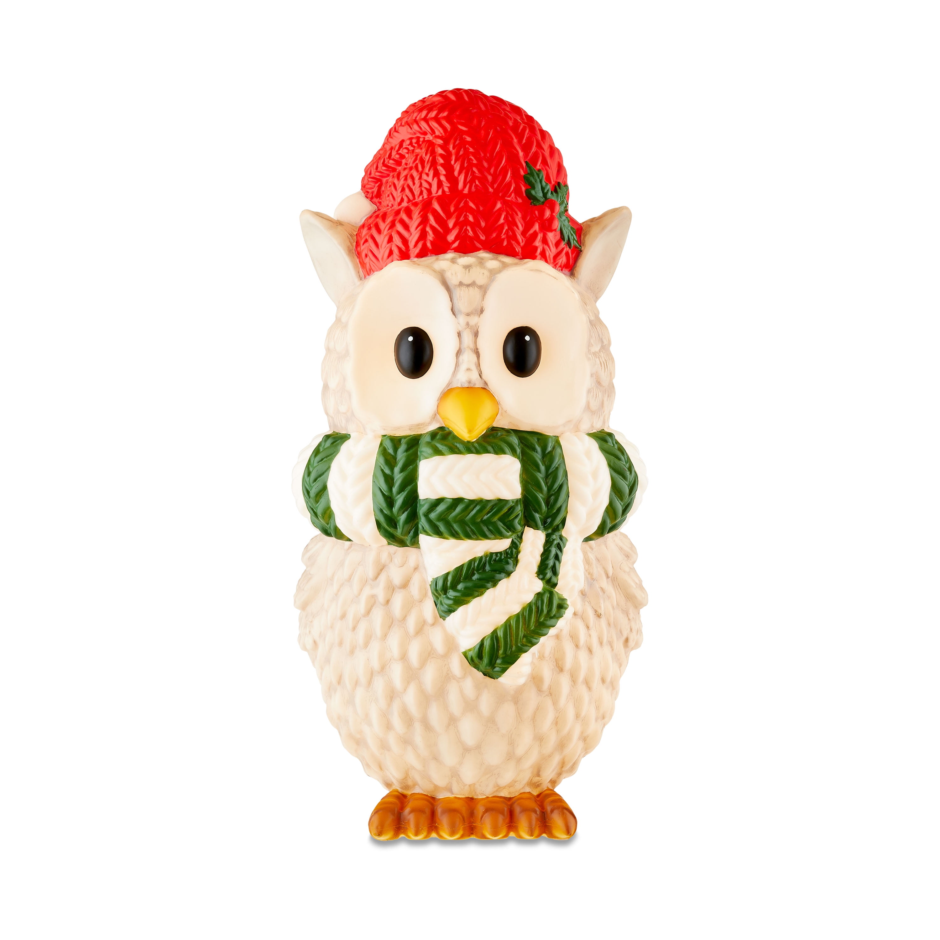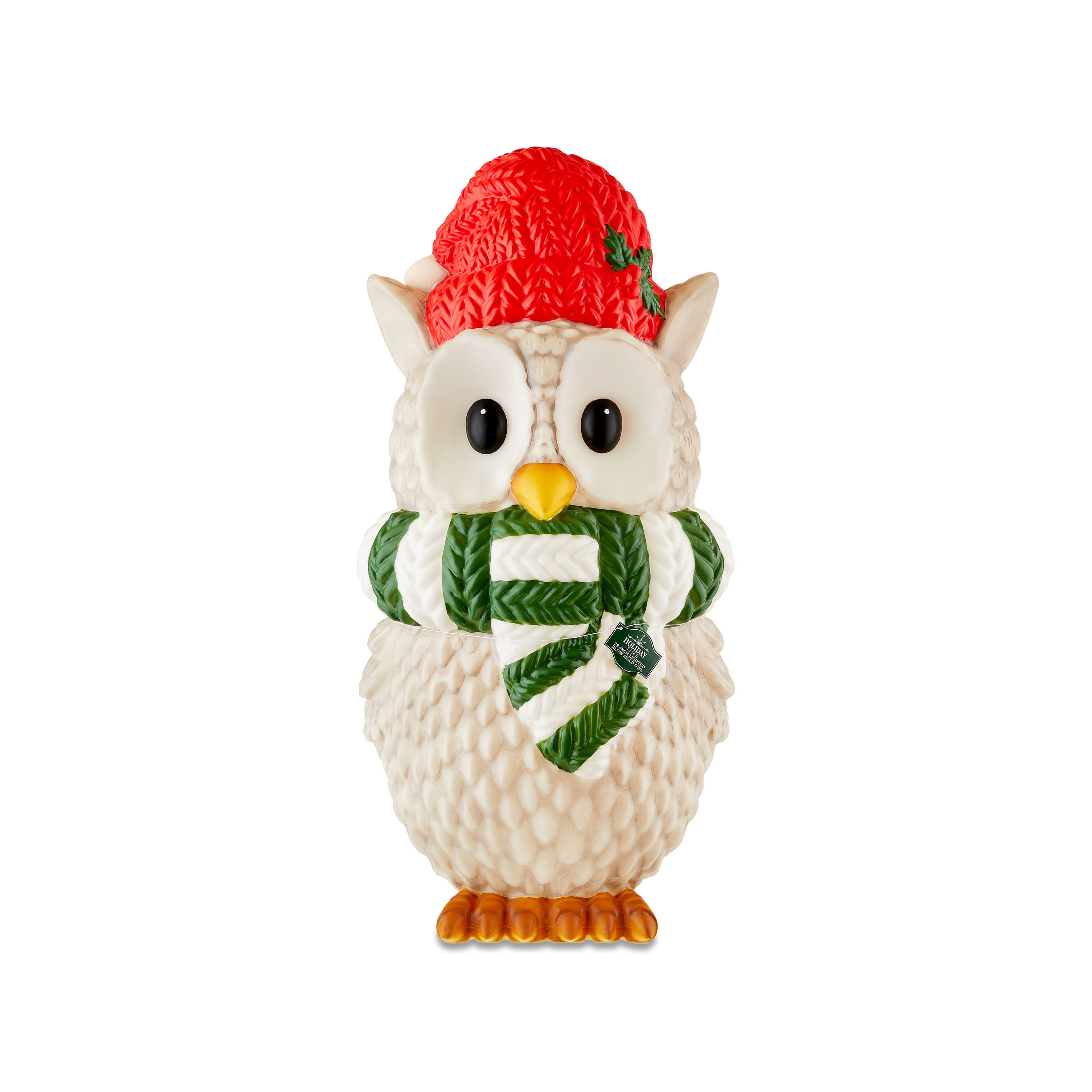 Holiday Time Lighted Blow Mold Owl Indoor/Outdoor Christmas Decoration, 32″ Owl decoration -Ideal for indoor or outdoor use -Display on your front porch or next to your Christmas tree -Wonderful way to welcome family and friends into your home -Lights up to illuminate your festivities -Measures 32″ tall -Material: Plastic -Color: Grey/White/Green/Red Check out all the joyful Christmas decorations from Holiday Time like inflatable characters, twinkling lights, colorful wreaths, and more CHRISTMAS OUTDOOR DÉCOR CHRISTMAS SCULPTURES AND STATUES