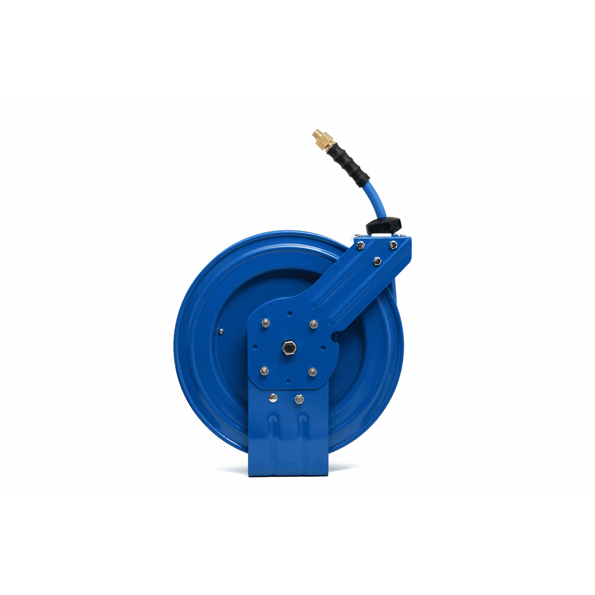 SMOOTH GEARING SYSTEM: BluBird’s metal retractable hose reel has a smooth auto-rewind 12 point locking ratchet gear system allowing you to lock at various lengths. LIGHTEST, STRONGEST, MOST FLEXIBLE: BluBird’s 100% rubber air hose is 40% lighter than standard industry hoses and as light a hybrid or PVC hose. It is stronger than the best of rubber hoses. HEAVY DUTY: Heavy duty 18ga. steel construction with 50% wider spring inside and rubber gasket for extended life. NEVER COIL YOUR HOSE AGAIN: Fully retractable, four rollers to reduce hose wear, horizontal or vertical wall mount options, an adjustable guide arm, includes 50 ft 1/2 inch and 3′ lead-in hose. EASE OF USE: Each BluBird hose is ultra light and super strong hose with 4 finger grip bend restrictor for easy of use.