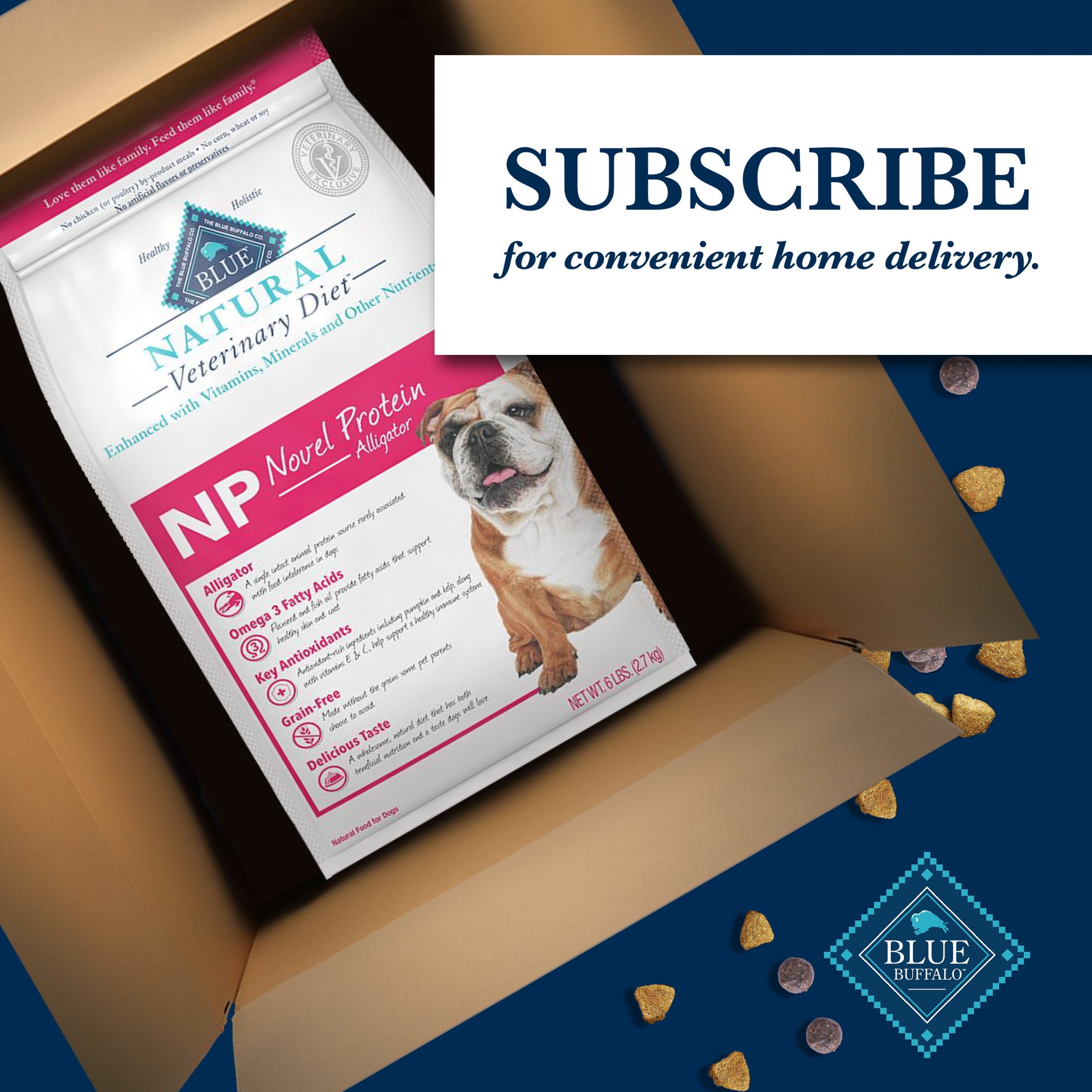 Blue Buffalo Natural Veterinary Diet NP Novel Protein Dry Dog Food is a veterinarian-prescribed formula with real, deboned alligator as the first ingredient. This dry dog food is formulated to nutritionally manage inflammatory skin and GI diseases in dogs, making it an ideal meal for dogs who experience adverse food reactions. Like all Blue Buffalo dog food, this alligator-first recipe is formulated without any chicken (or poultry) by-product meals. It’s also free of corn, wheat, soy, artificial flavors, and preservatives. BLUE Natural Veterinary Diet is a delicious choice to treat your dog’s food intolerance.