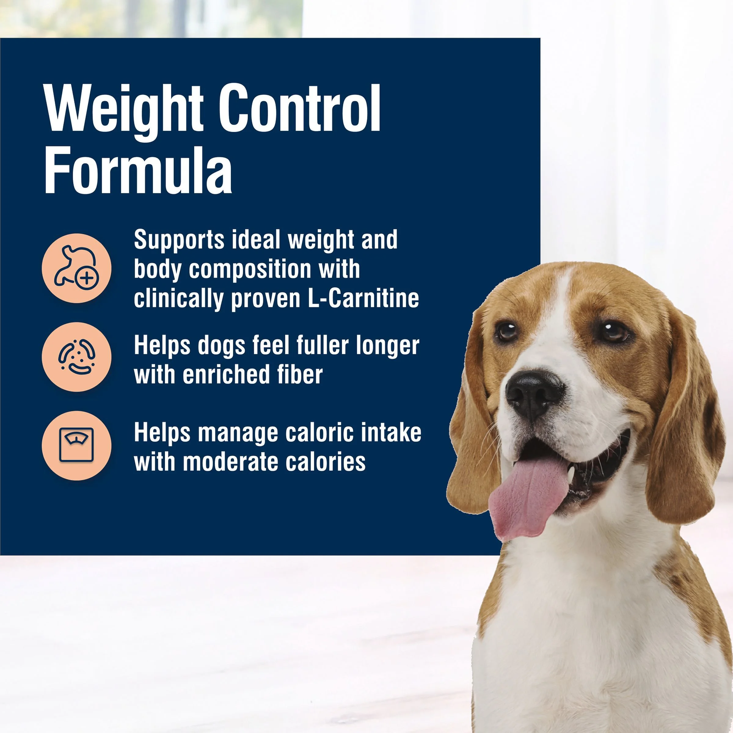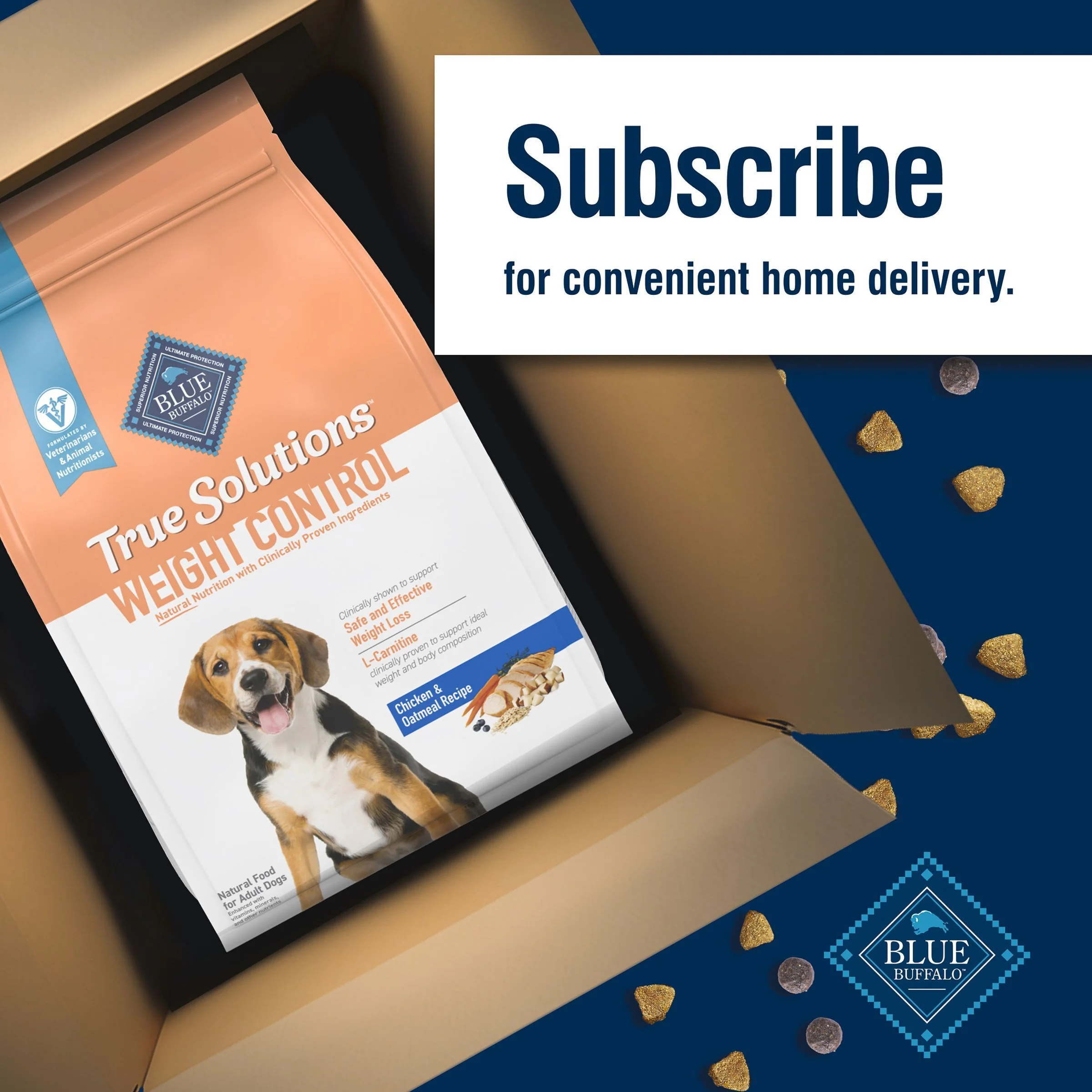 WEIGHT CONTROL FORMULA: Our healthy weight management dog food provides moderate calories and is made with L-carnitine to help your adult dog achieve and maintain an ideal weight, and enriched fiber to help your dog feel fuller longer FORMULATED BY VETERINARIANS & ANIMAL NUTRITIONISTS: True Solutions offers natural nutrition with clinically proven ingredients recommended by veterinarians REAL CHICKEN FIRST: This Blue Buffalo dog food is made with real, high-quality chicken as the #1 ingredient HEALTHY, WHOLESOME INGREDIENTS: Blue Buffalo natural dog food is made with no chicken (or poultry) by-product meals and no corn, wheat, or soy PACKAGING MAY VARY: Contains one (1) 24-lb. bag of BLUE True Solutions Weight Control Dry Dog Food, formerly Healthy Weight ENHANCED IMAGERY: We have enhanced our digital product packaging to highlight our products’ ingredients and essential benefits. While the physical packaging will differ slightly, all information is accurate