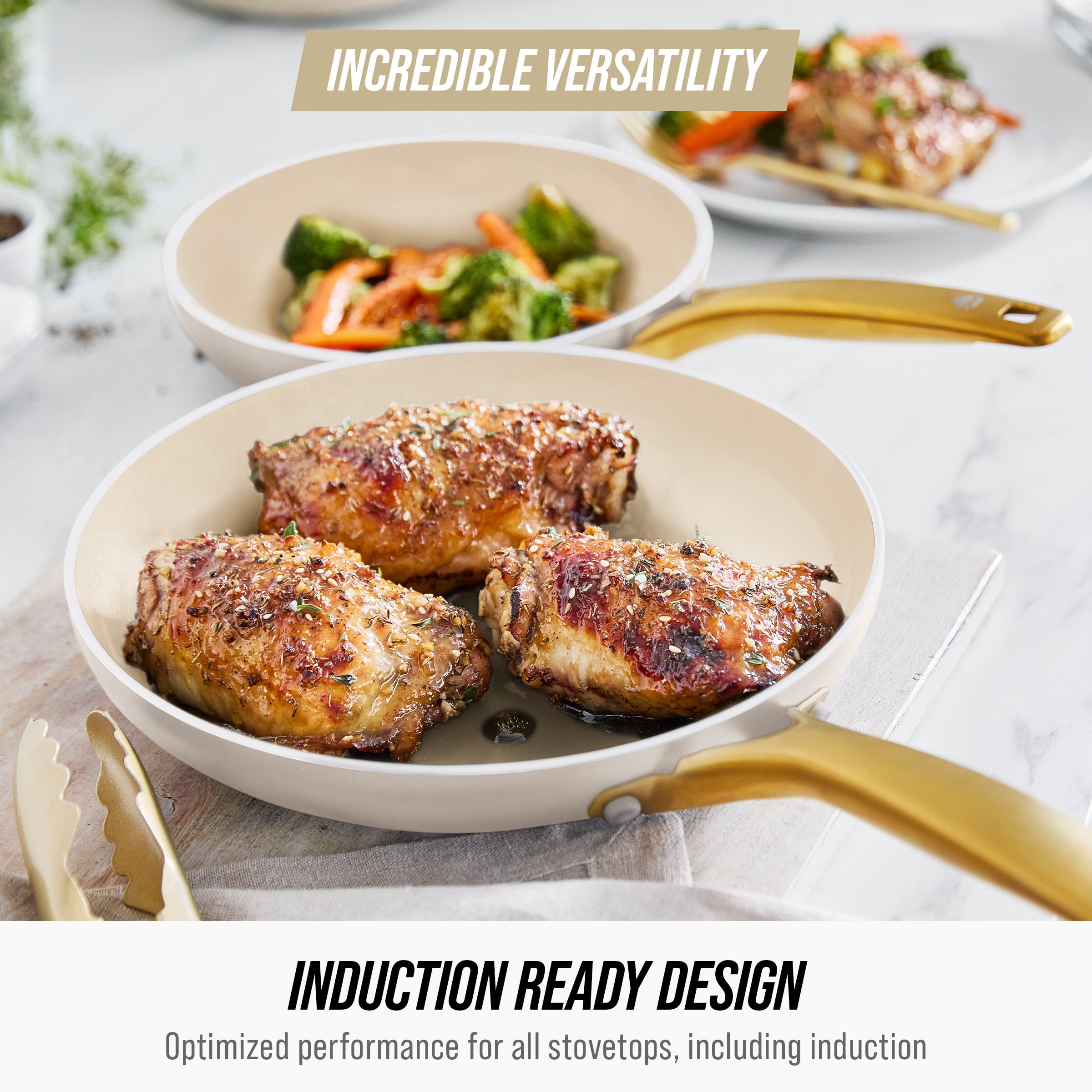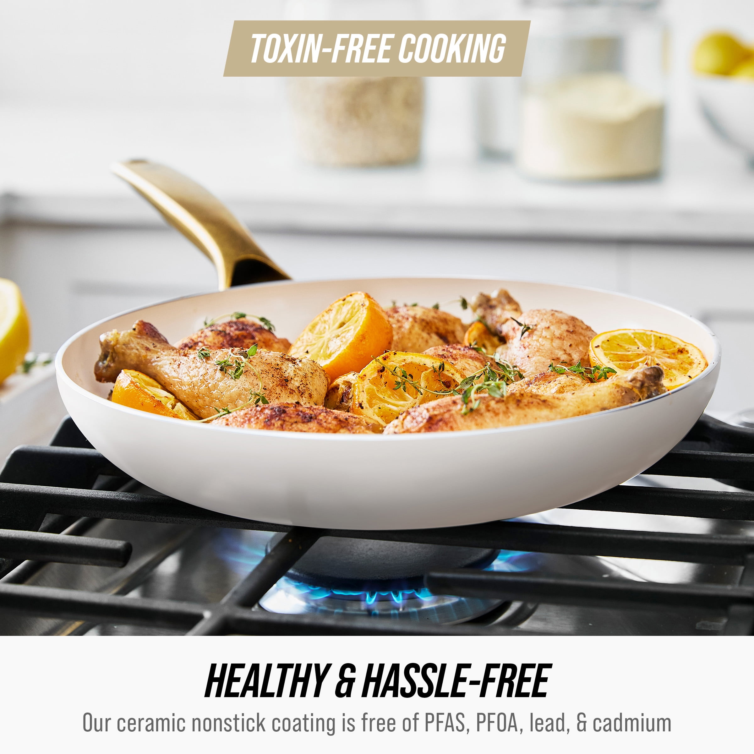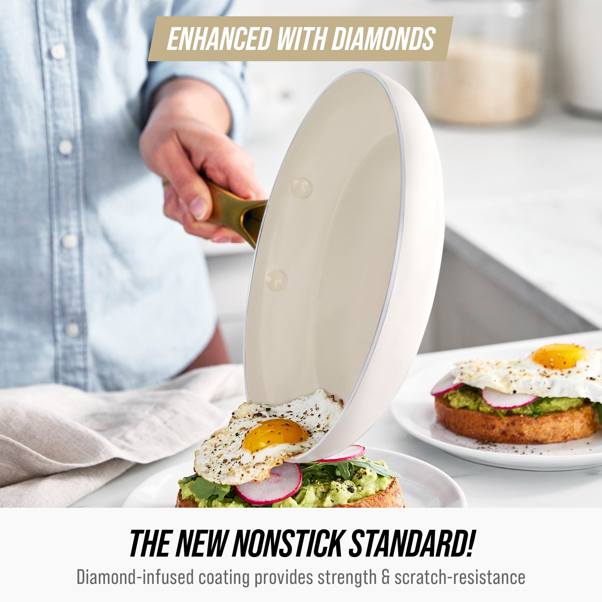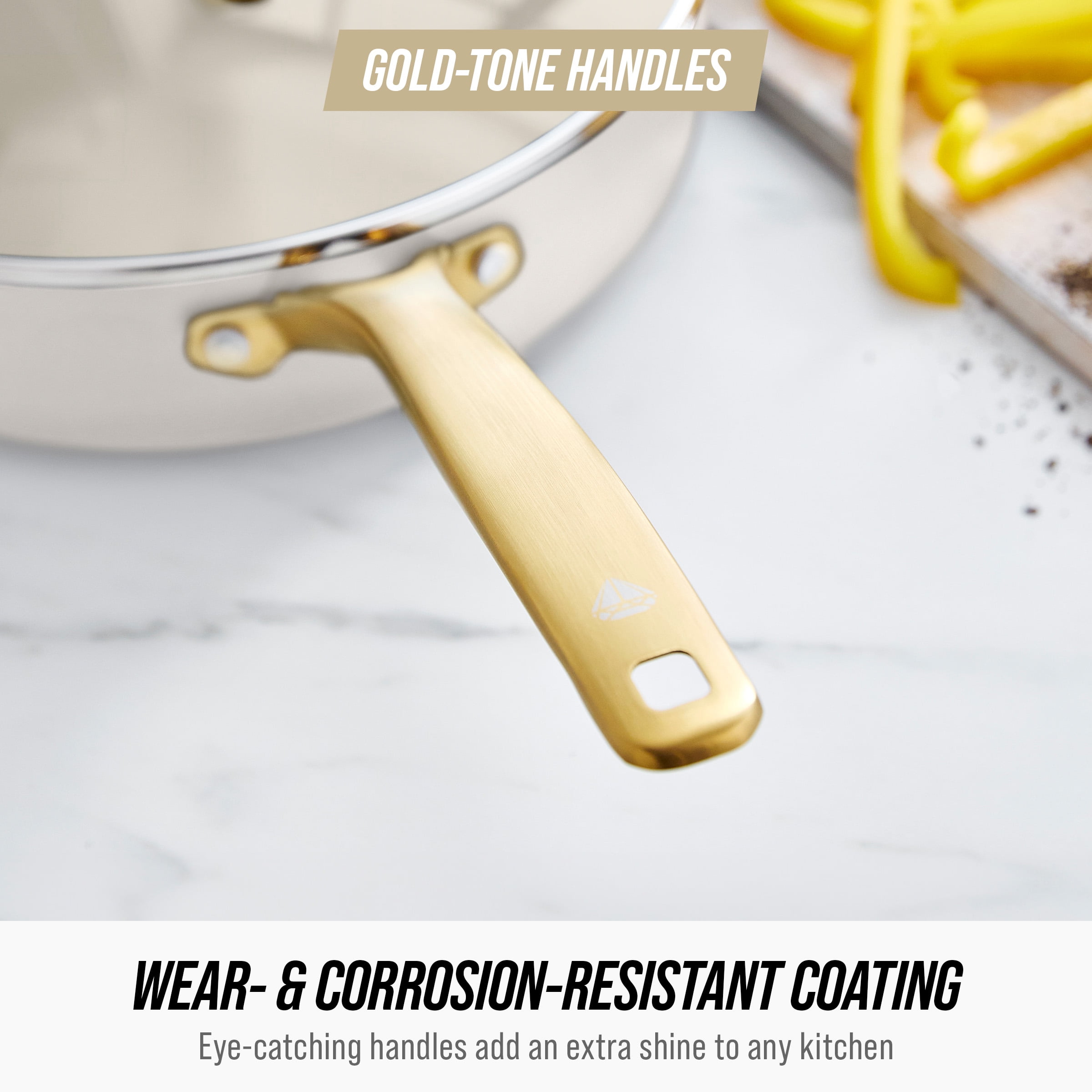 Blue Diamond White 12 Piece Nonstick Aluminum Pot and Pan Cookware Set, Gold