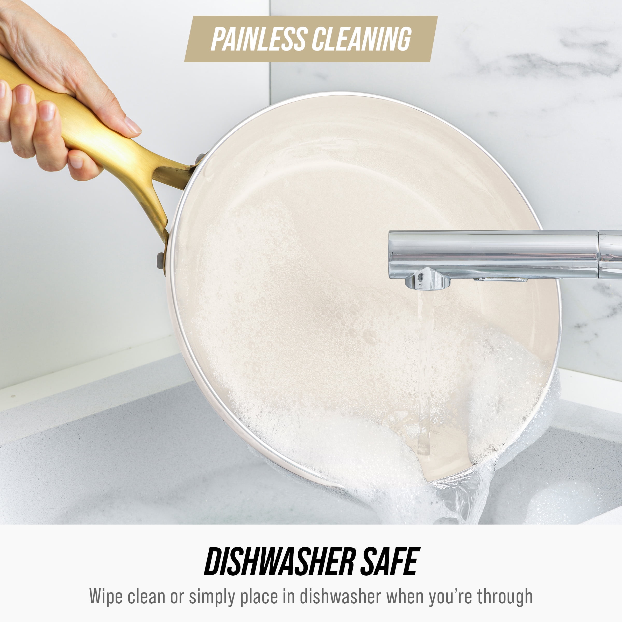 Blue Diamond’s ceramic nonstick coating is infused with diamonds for remarkable strength and durability while delivering a shine that lasts a lifetime. Featuring a heavy-duty forged base and crafted from durable aluminum, this spacious pan will tackle countless meals without warping, wobbling, or degrading. Plus, Blue Diamond’s ceramic nonstick coating is for worry-free cooking. Simply place this pan in the dishwasher when you’re through for a painless cleanup.