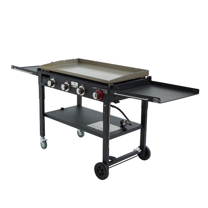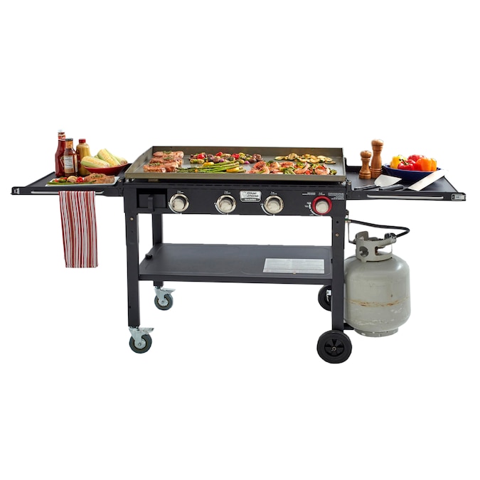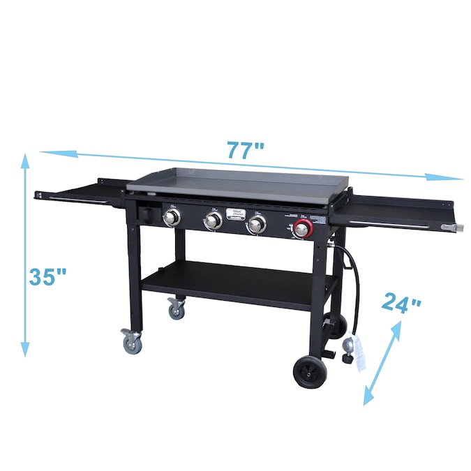 - Thick rolled-steel pre-seasoned cooking griddle top