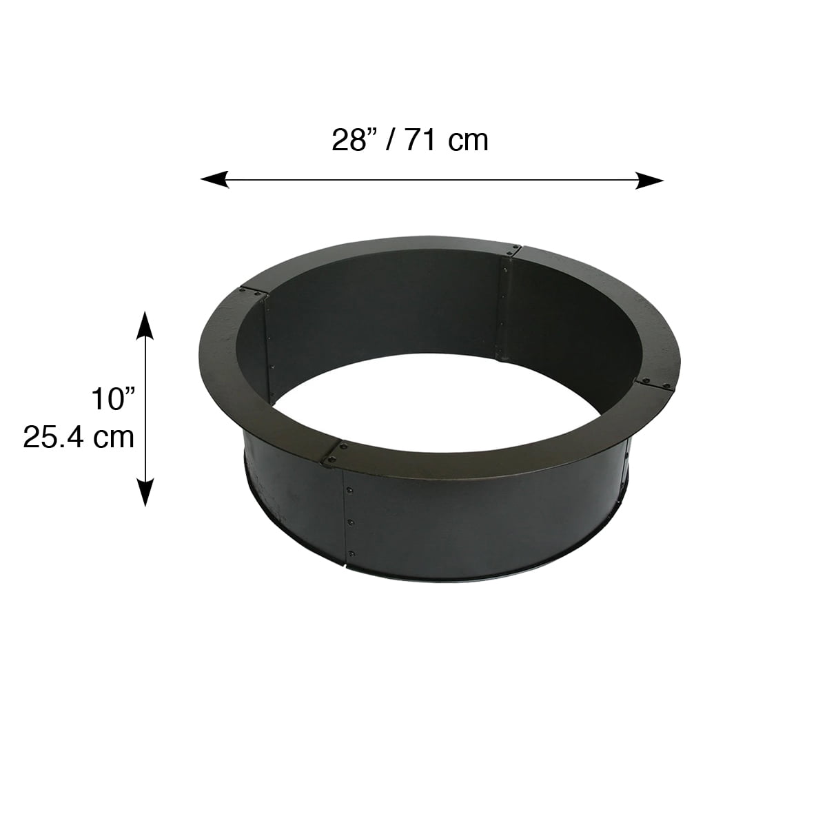 Amplify your next outdoor adventure while keeping warm and cozy with the Blue Sky Outdoor Living Heavy Gauge 28″ Round Fire Ring. This outdoor fire ring offers a convenient way to enjoy a fire in your backyard patio or during all of your outdoor excursions such as beach days or camping trips. It helps contain your fire to create a safe environment and can be used by itself or as a block insert (blocks not included) for a more aesthetically pleasing fire pit experience. Constructed from heavy-duty steel with a high temperature black paint finish, this heavy-gauge backyard fire ring is 3 times the weight and 2 times the gauge of standard fire rings to withstand tough use outdoors. Assembly is quick and easy so you can start enjoying fires right away, and it measures 33.25″ D x 10″ H when assembled for the perfect compact fit in your backyard or patio. This outdoor fire ring pairs perfectly with the Blue Sky Outdoor Living 24″ Swing Away Grill for a safe and easy way to grill your favorite barbecue foods directly over the fire.