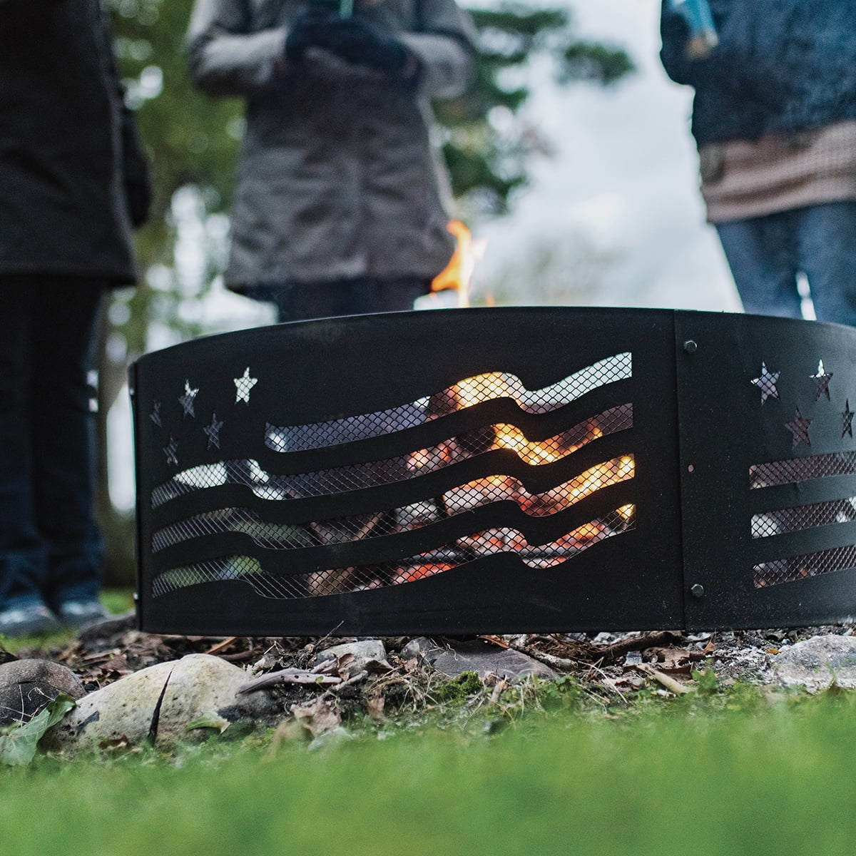 Unique and patriotic stars and stripes cutout design adorns the perimeter of the fire pit ring Constructed of sturdy and durable steel for long lasting, quality use All parts and hardware are included for this 4 piece fire ring kit to assemble quickly